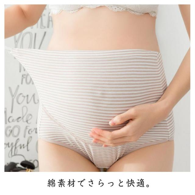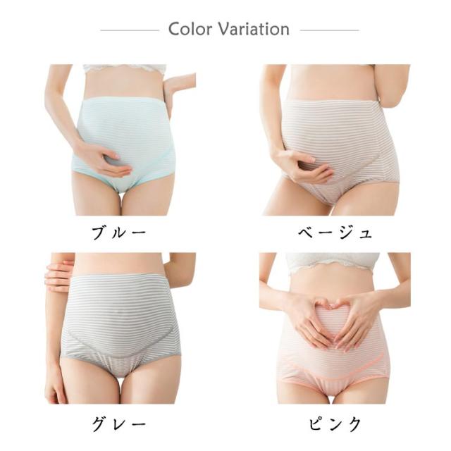 マタニティショーツ マタニティ用 深め 可愛い ボーダー柄 ハイウエストショーツ フィット感 ショーツ 深履き マタニティショーツ 産前 産後 大きいサイズ ストレッチ 綿