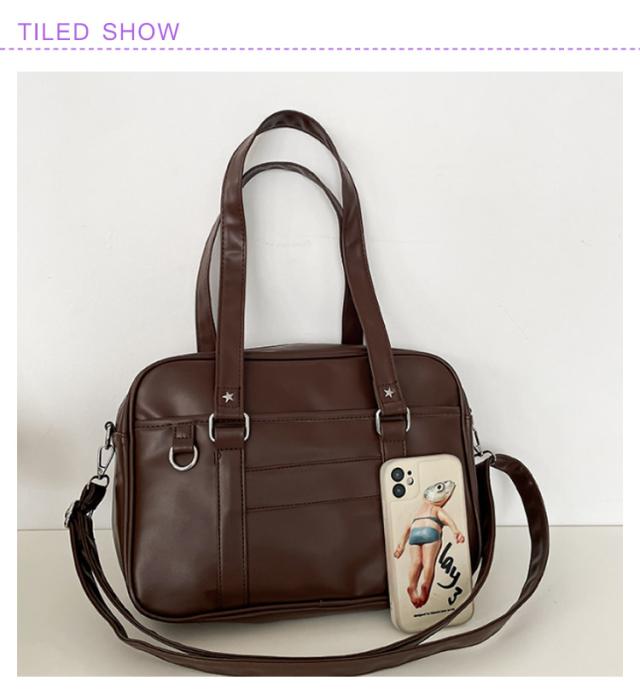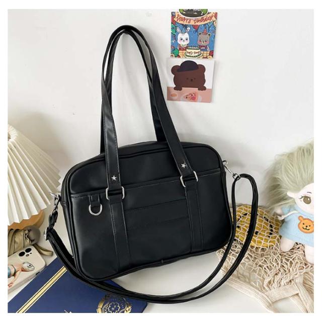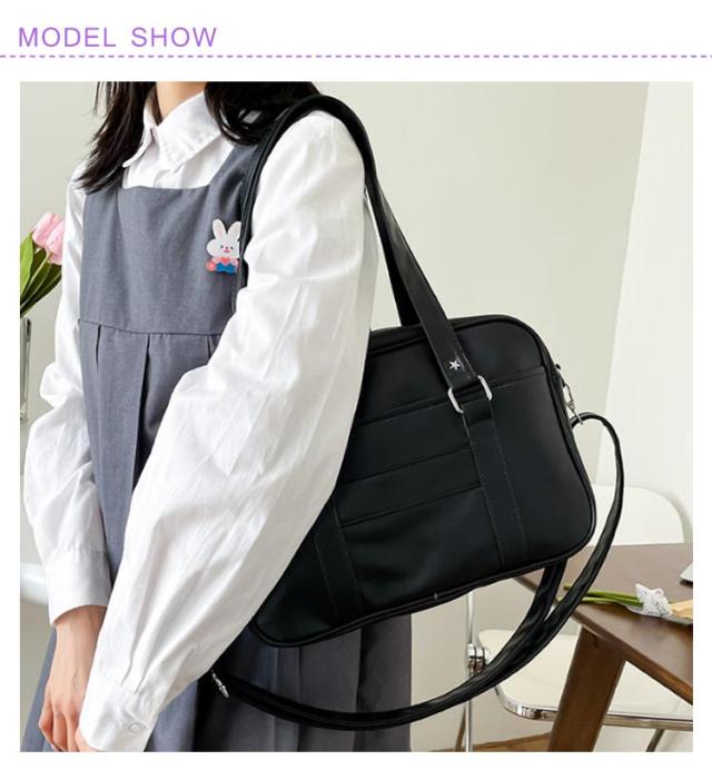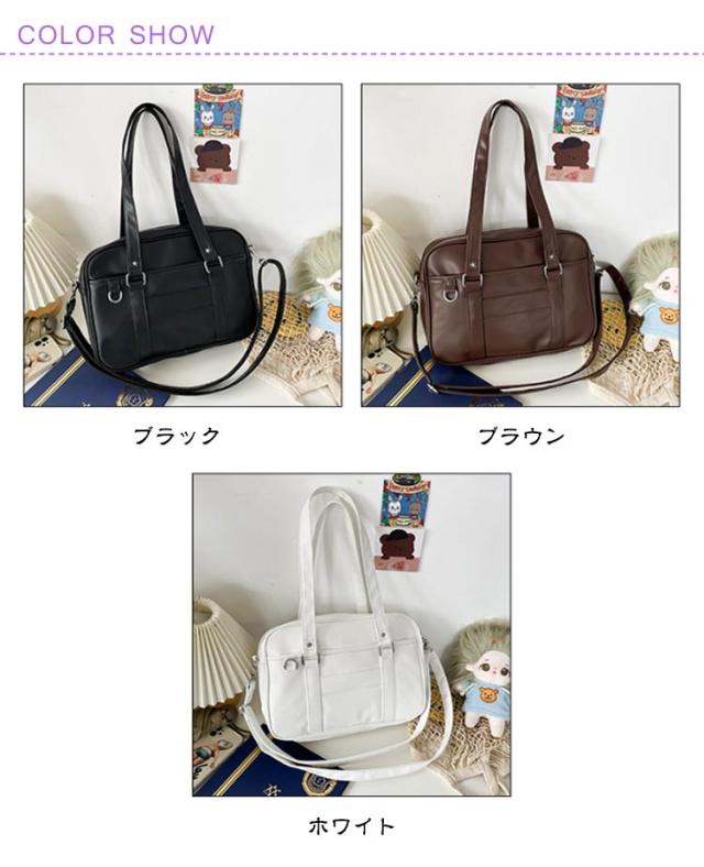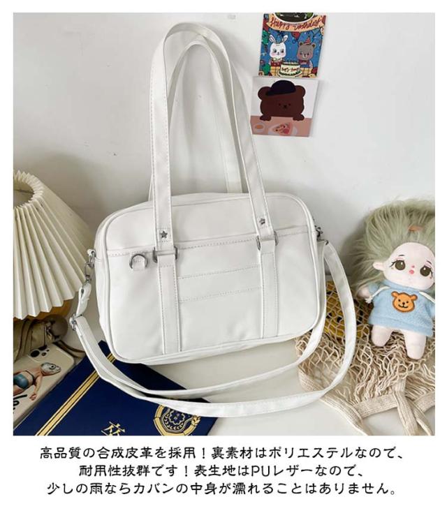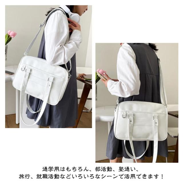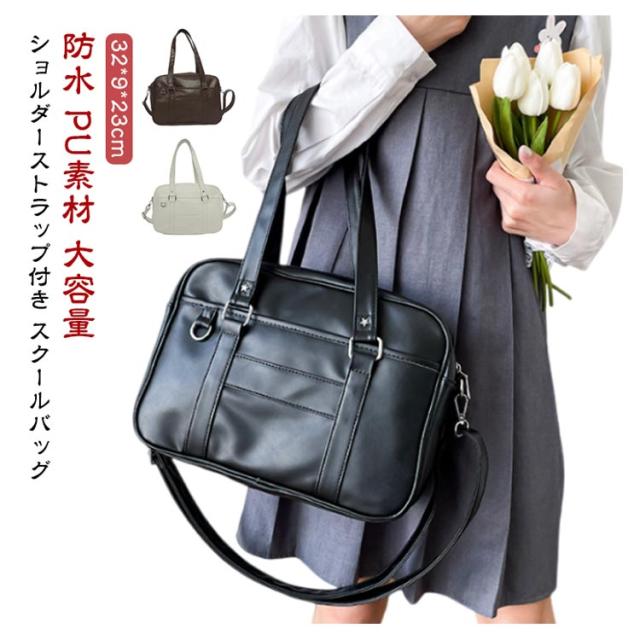 レディース トートバッグ ショルダーバッグ 防水 制服 大容量 ブラック PU素材 スクバ ショルダーバッグ 手提げ スクールバッグ 斜めがけ 学生カバン 学生かばん 通勤 カジュアル 学生鞄 合皮 女子高生 学生 通勤 日帰り 旅行 高校生 ホワイト 中学生