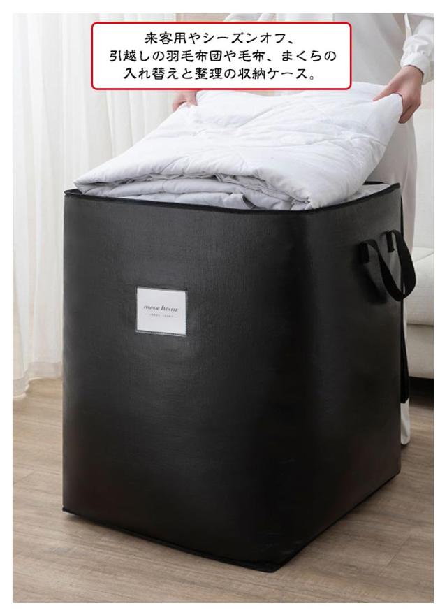 | 大きめサイズでたっぷり大容量!季節の布団や衣類の収納にぴったりな収納袋。 オフシーズンの衣類、羽毛布団、毛布、敷パッドなどの寝具の長期保管にピッタリ、すっきり収納できます。 傷や汚れに強く、耐水性にも優れたオックスフォード製。通気性が良く防塵・防湿・防虫効果も高くて安心して使用できます。 コンパクトに!柔らかい素材で折りたたみ可能なので、使用しない時も収納場所を取りません。 来客用やシーズンオフ、引越しの羽毛布団や毛布、まくらの入れ替えと整理の収納ケース。 | |
