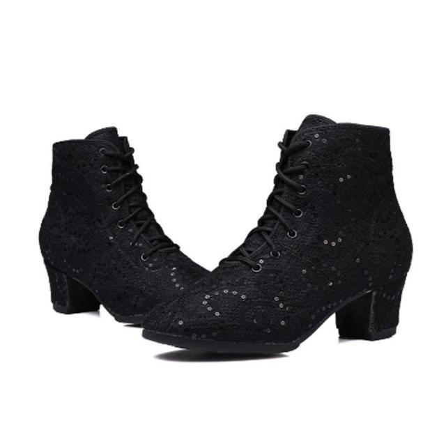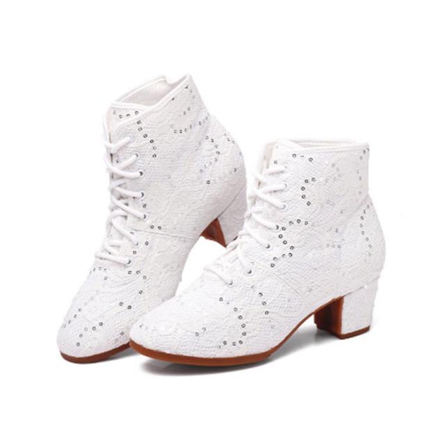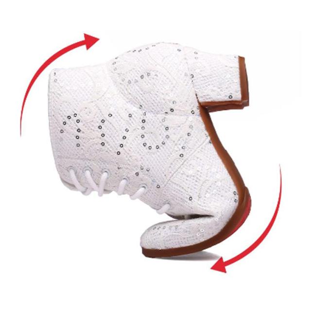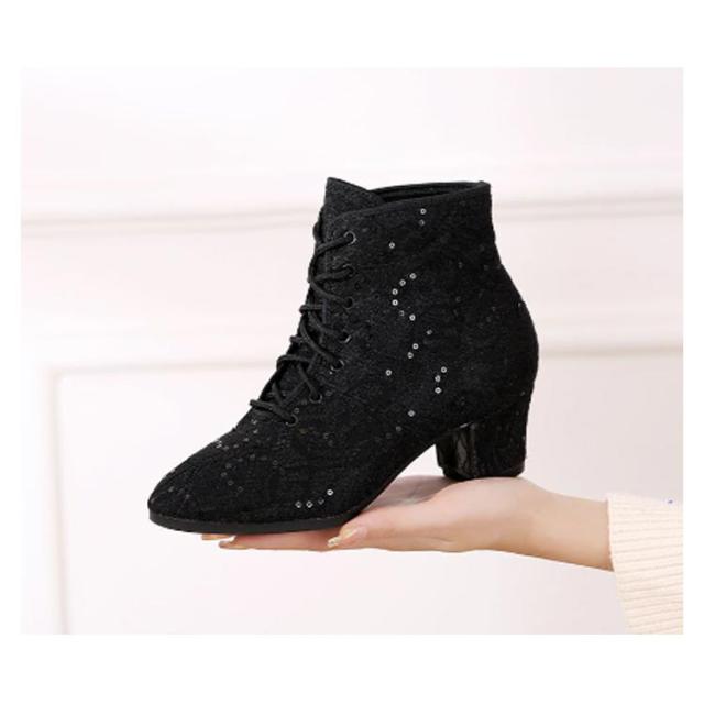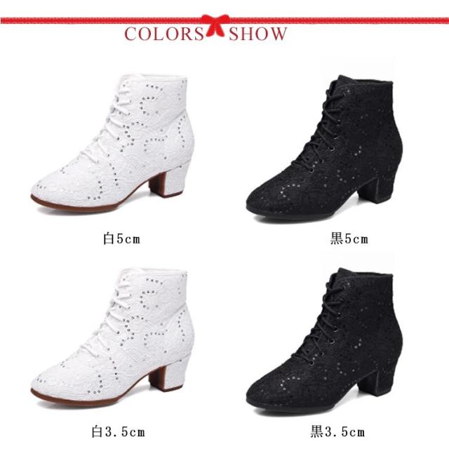 シューズ スパンコール ブーツ ヒール スパンコール スパンコール ショートブーツ レディース ブーツ 編み上げブーツ メッシュ ダンスシューズ ダンスブーツ ジャズダンス ヒップホップ コスプレ ダンス靴