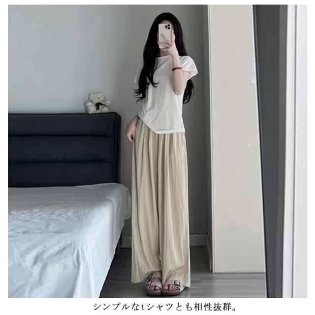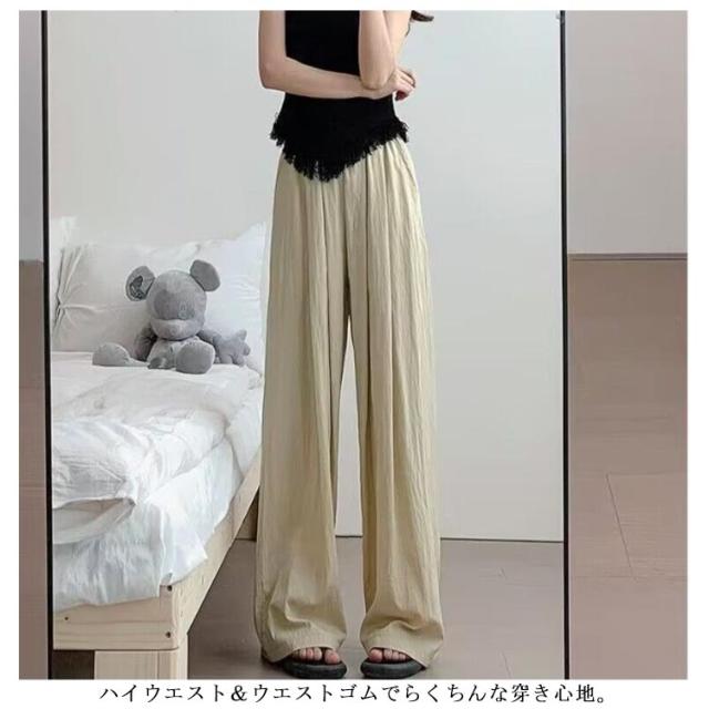 UVカット ワイドパンツ 【2枚セット】 【2枚セット】 さらさら ワイド ボトムス ワイドパンツ ガウチョパンツ ウエストゴム シワ加工 夏 ガウチョ レディース 接触冷感 長ズボン 女性 ズボン 薄手 リラックス ひんやり 秋 春 夏用 涼しい