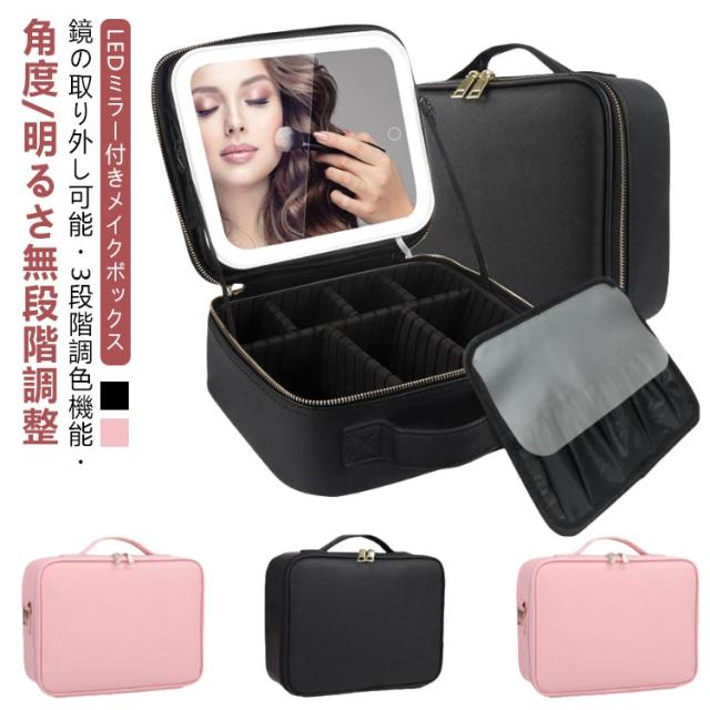 おしゃれ メイクボックス 防水 取り外し可能 ボックス レザー ライト付き 大容量 仕切り メイクボックス 3色調光 LEDミラー付き 充電式 コスメケース コスメボックス 化粧ボックス 鏡付き 化粧箱 化粧品入れ 化粧品 ケース メイク