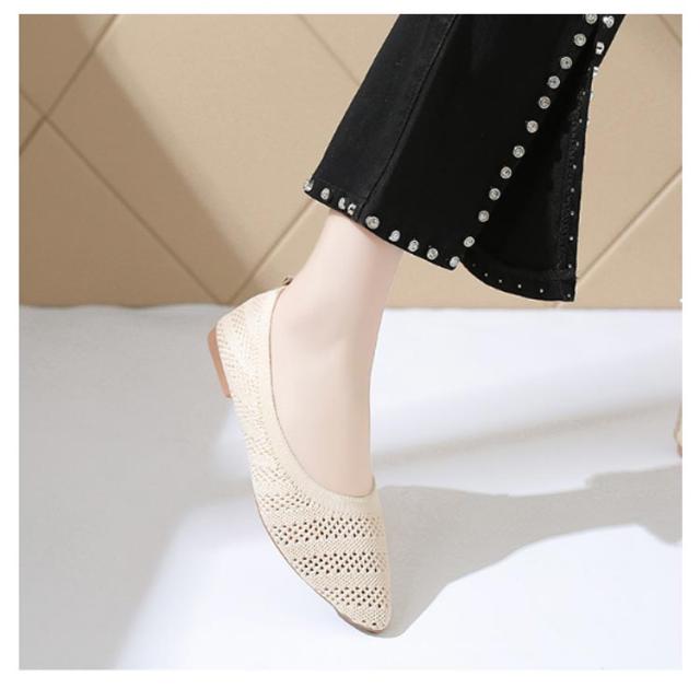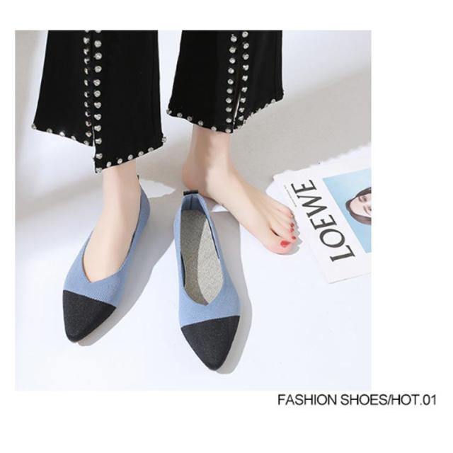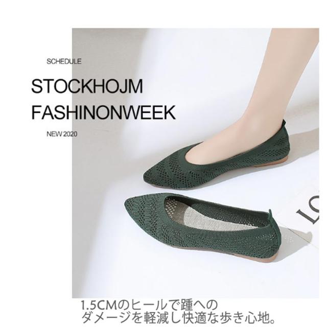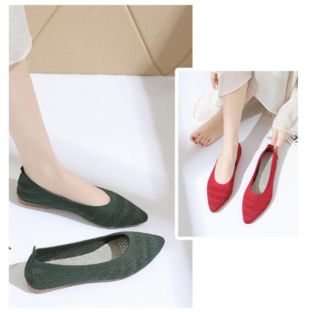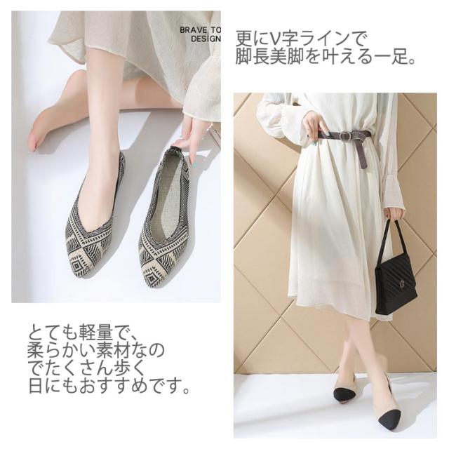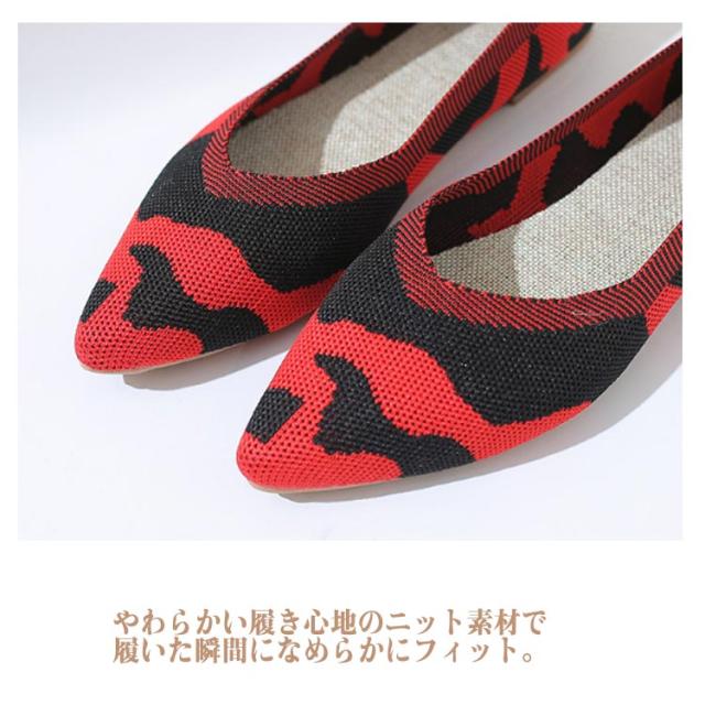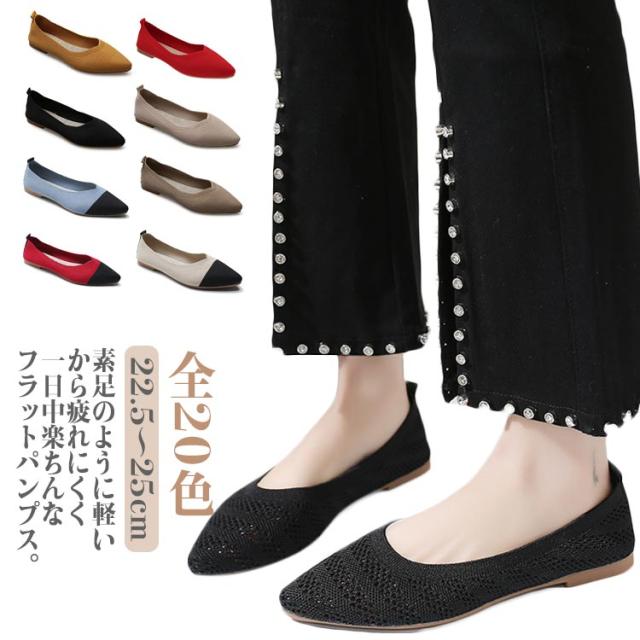 フラットパンプス ニット ぺたんこ 女性 通気性 パンプス 黒 痛くない レディース サマーシューズ 22.5〜25cm 軽量 おしゃれ 疲れない 歩きやすい ローヒール 外反母趾 甲高 Vカット