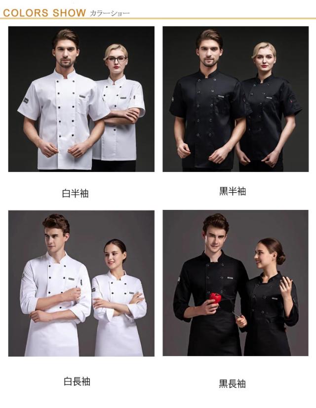 | 【半袖/長袖】【M〜4XL】【通気性抜群】 ポイント:後ろはメッシュ生地なので通気性に優れ、熱が籠りがちな厨房や、暑い夏場でも毎日快適に着用していただけます。 キッチンでもホールでも着られるデザインです。 レストラン、カフェ、パン屋さん、ケーキ屋さんなどの制服としておススメです。 お店のイメージに合わせて2色からお選びいただけます。 軽くシワになりにくく、洗濯時の乾燥が速く、取り扱いも簡単です。 男女問わず、年齢問わず幅広くご使用いただけます。 | |