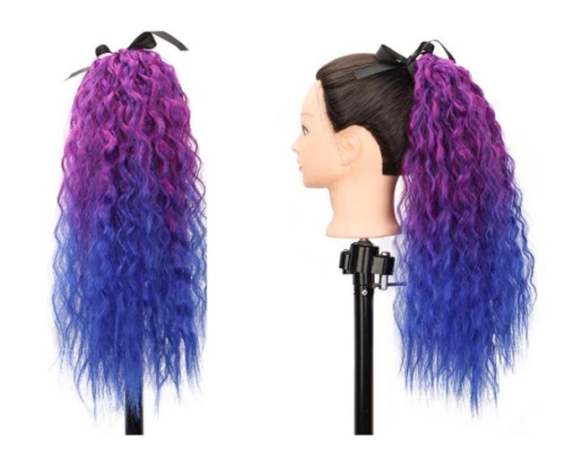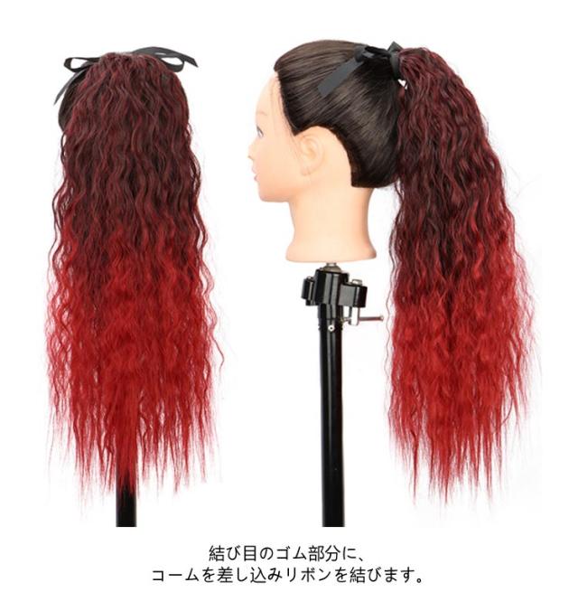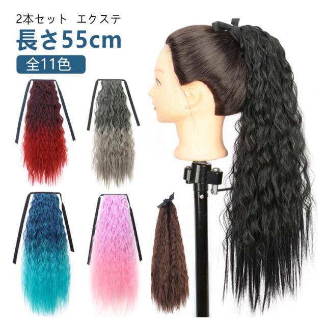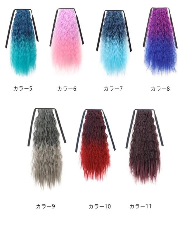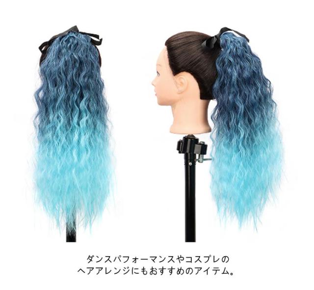 【2本セット】ウェーブ 女の子 グラデーション ヘアーエクステンション ガールズ 子供 ポニーテール メッシュ ウイッグ キッズ 大人 カール ピンク ブルー パープル ロング つけ毛 派手 【2本セット】ウェーブ ツインテール コスプレ 発表会