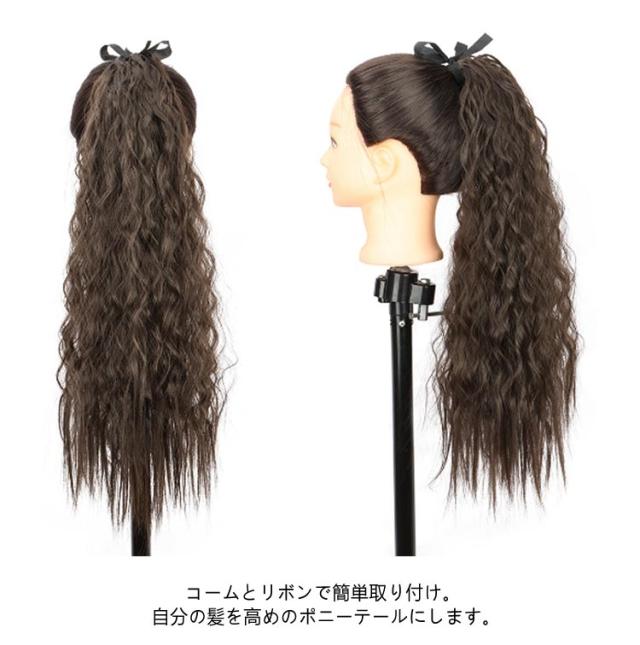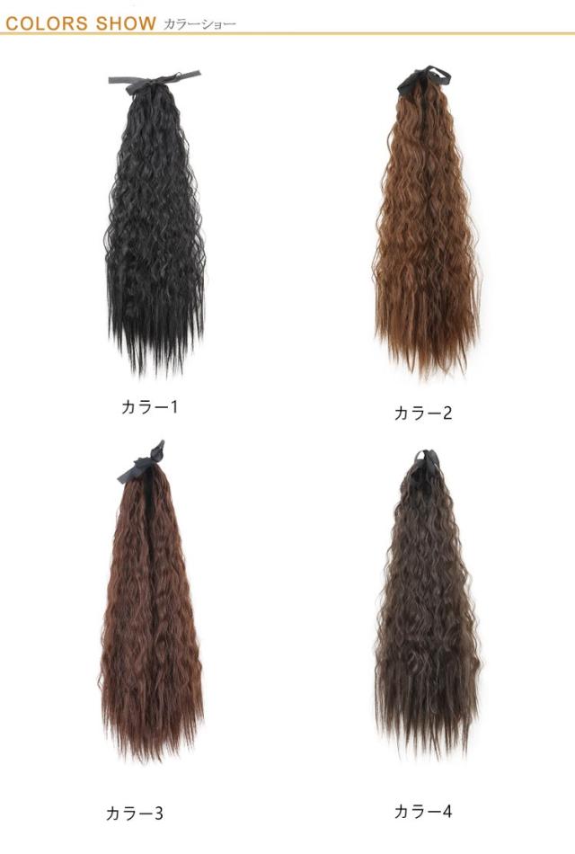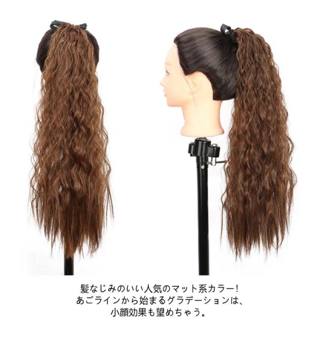 | 【2本セット】【長さ55cm】【全11色】【エクステ】 簡単アレンジ。一目で可愛い!ゆるふわボリュームたっぷりグラデーションウェーブエクステ。 髪なじみのいい人気のマット系カラー!あごラインから始まるグラデーションは、小顔効果も望めちゃう。 毛先にかけてボリューム感をだしているので豪華でバランスがとれた印象に。 コームとリボンで簡単取り付け。 自分の髪を高めのポニーテールにします。 結び目のゴム部分に、コームを差し込みリボンを結びます。 ウィッグで自分の髪を隠して、馴染ませれば完成です。 ダンスパフォーマンスやコスプレのヘアアレンジにもおすすめのアイテム。 | |