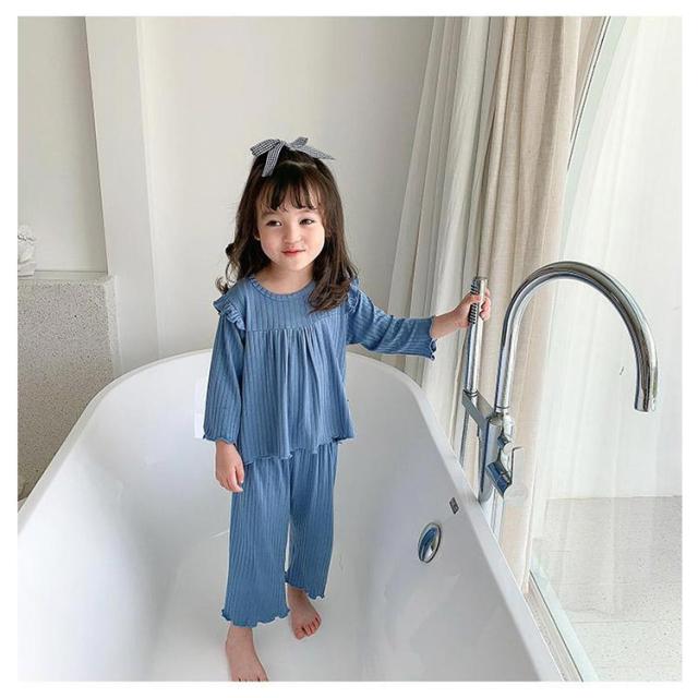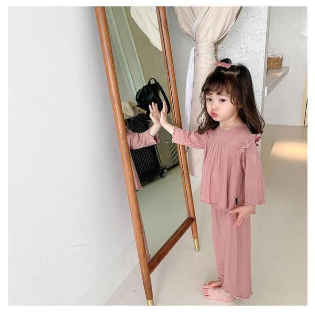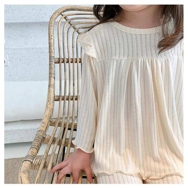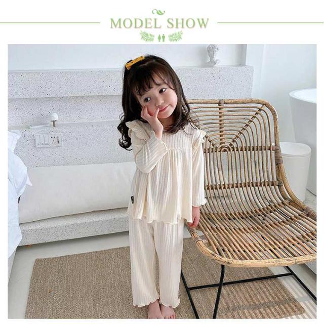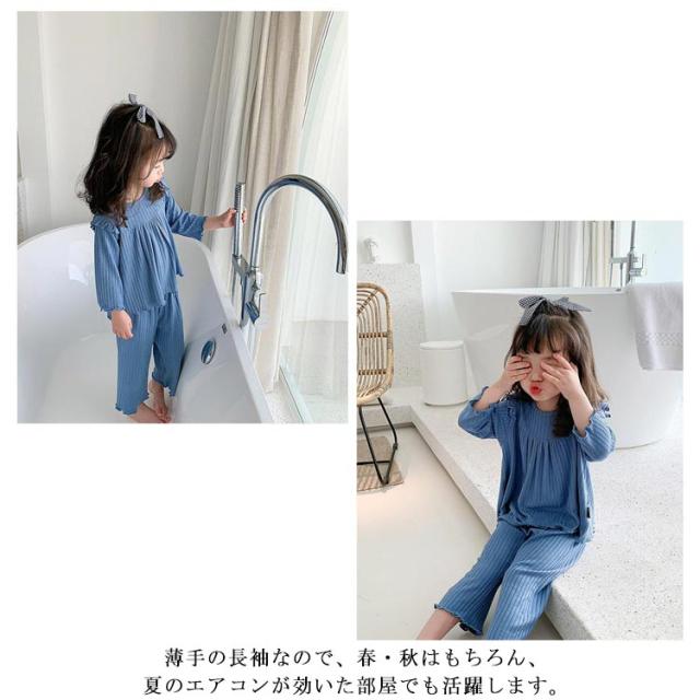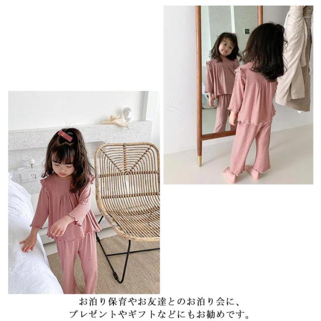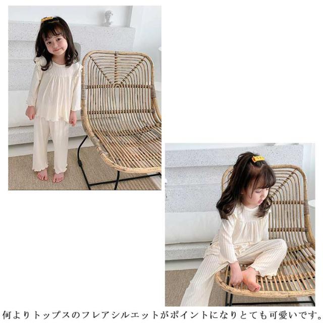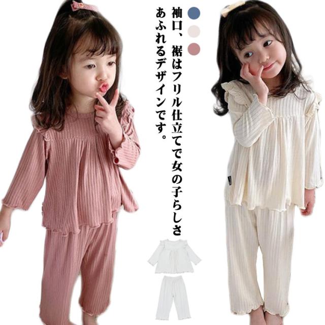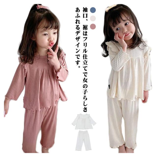 フリル パジャマ 子供パジャマ 子供服 キッズ 長袖 パジャマ フリル 上下セット 柄物 寝間着 ルームウェア ロングパンツ 長袖Tシャツ フレア 女の子 長ズボン リブ仕様 春秋 部屋着 セットアップ 送料無料 かわいい