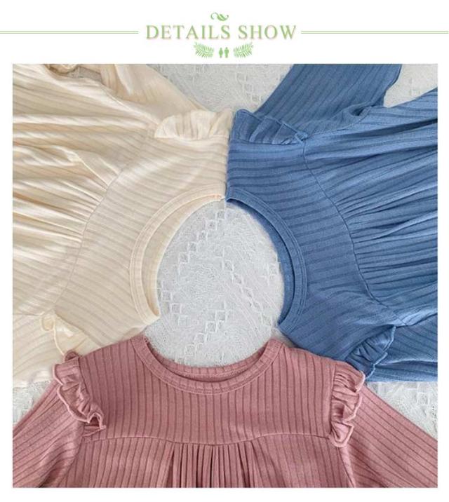 | 袖口、裾はフリル仕立てで女の子らしさあふれるデザインです。 何よりトップスのフレアシルエットがポイントになりとても可愛いです。 生地はやわらかくストレッチが効いていてとてもよく伸びるので着せやすいです。 ウエストはゴム仕様、ワイドパンツは体を締め付けずゆったりフィットします。 薄手の長袖なので、春・秋はもちろん、夏のエアコンが効いた部屋でも活躍します。 お泊り保育やお友達とのお泊り会に、プレゼントやギフトなどにもお勧めです。 | |