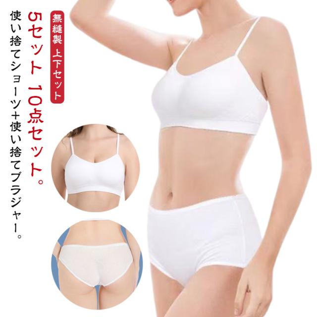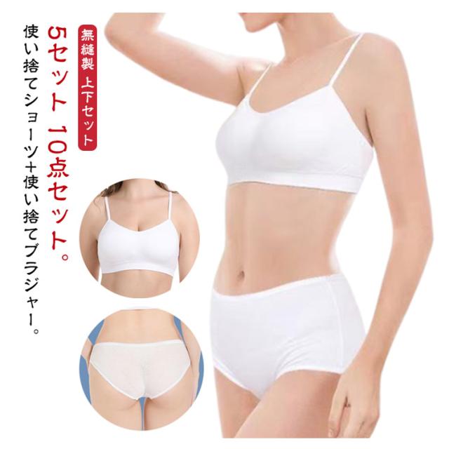 下着 出張 5セット ノンワイヤーブラ ブラジャー*ショーツ 10点 ショーツセット レディース ブラジャー*ショーツ トラベル 便利グッズ 旅行 アウトドア 防災グッズ 病院 入院 介護 ブラショーツセット 使い捨て インナー 携帯 非常時 海外旅行 衛生的 大きいサイズ
