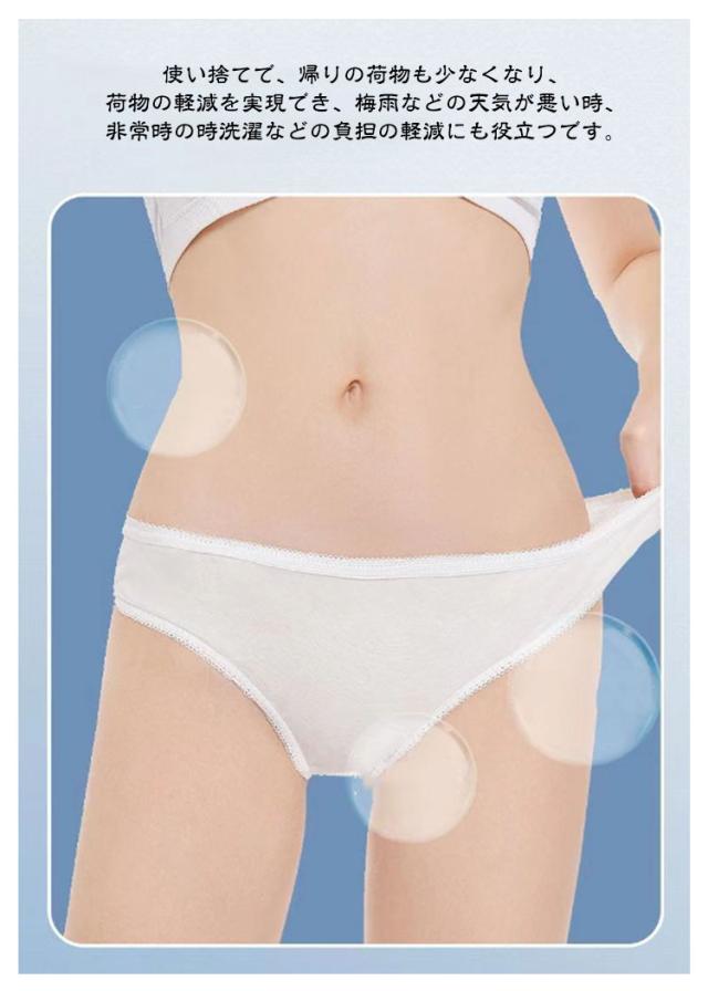 | 使い捨てショーツ+使い捨てブラジャー。5セット 10点セット。 使い捨てで、帰りの荷物も少なくなり、荷物の軽減を実現でき、梅雨などの天気が悪い時、非常時の時洗濯などの負担の軽減にも役立つです。 緊急避難時の衛生対策や、旅行の際にも便利! 通気性、吸収性にすぐれている! 自分用にも、急に泊りに来た友人用にも買い置きがあると便利です。 | |
