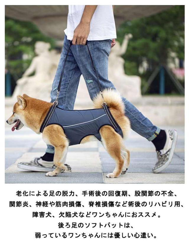 | 小型犬・中型犬・大型犬 全身サポート歩行補助 老犬の介護に!脚の怪我に!犬用介護ハーネス。 関節炎、形成障害、脊髄の外傷など介護が必要な愛犬や、立ち上がることや歩くことが難しい老犬を介護するための介護用ハーネスです。 3本のベルトでサイズ調整できますので、優しくフィットできます。 後ろ足のソフトパットは、弱っているワンちゃんには優しい心遣い。 リフレクター素材を用いて、視認性をアップし、夜間の歩行も安心です。 老化による足の脱力、手術後の回復期、股関節の不全、関節炎、神経や筋肉損傷、脊椎損傷など術後のリハビリ用、障害犬、欠陥犬などワンちゃんにおススメ。 | |