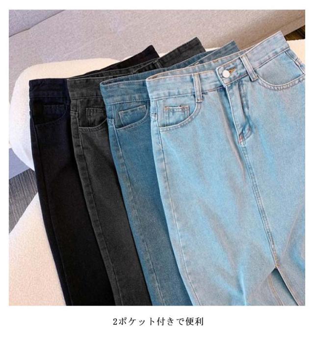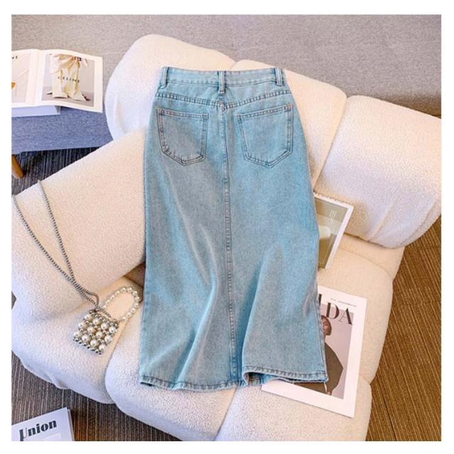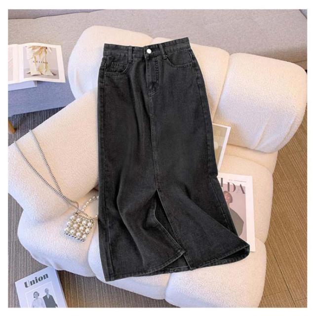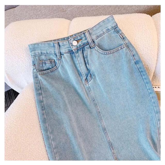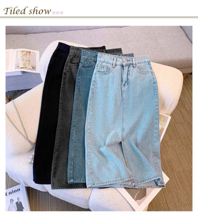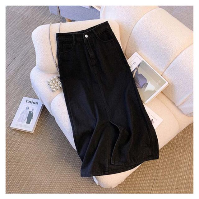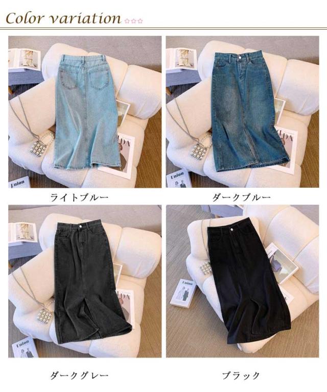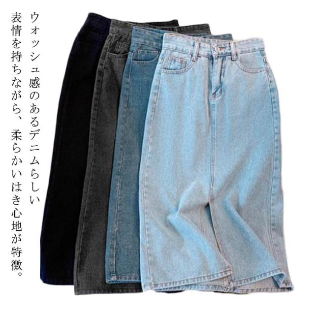 H型 春 タイト ストリート バックスリット デニムスカート ひざ下 夏 秋 可愛い お洒落 ロング丈 タイトスカート 膝下 デニムスカート ジーンズスカート ハイウエスト