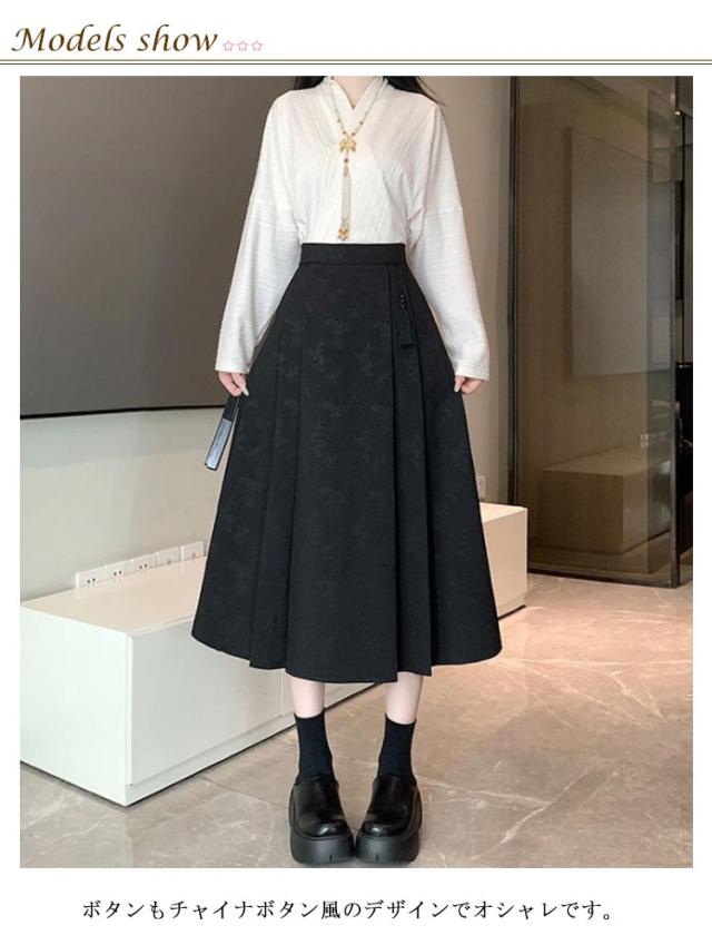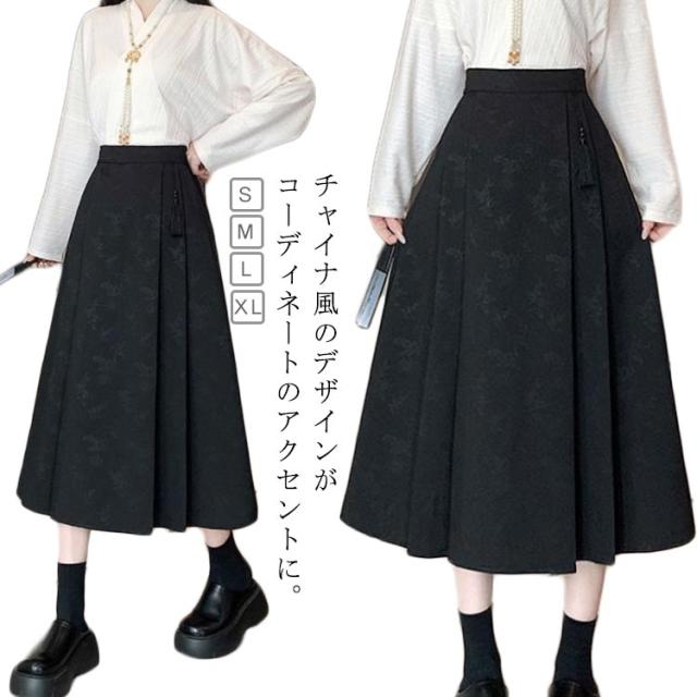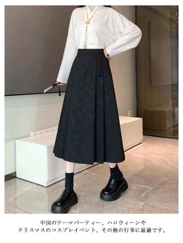 レディース マミアンスカート ハイウェスト スカート 巻きスカート プリーツスカート チャイナドレス ?ロング丈 ロングスカート プリント柄 体型カバー マミアンスカート サーキュラースカート ラップ 民族風 漢服 唐装