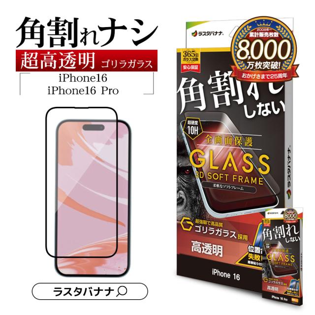 【送料無料】iPhone16 16 Pro iPhone15 ガラスフィルム 全面保護 高光沢 高透明 クリア 角割れしない ゴリラガラス採用 0.25mm 10H 簡単貼り付け アイフォン ラスタバナナ SGG4297IP461 SGG4380IP461P