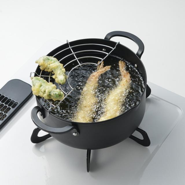 熱伝導率のよい鉄製天ぷら鍋。コンパクトなので少ない油で揚げられて経済的。