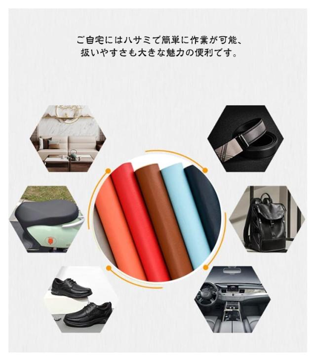 | 革製品のキズや破れ等に切って貼るだけで補修できるレザーシートです。 上質なPU材質で作られ、防水・耐摩耗・傷防止の特性があります。 合成皮革の裏面に接着剤シールがあり、操作が簡単です。 ご自宅にはハサミで簡単に作業が可能、扱いやすさも大きな魅力の便利です。 ソファーや椅子などの家具、バッグや財布などのファッション小物等幅広くご使用頂けます。 | |