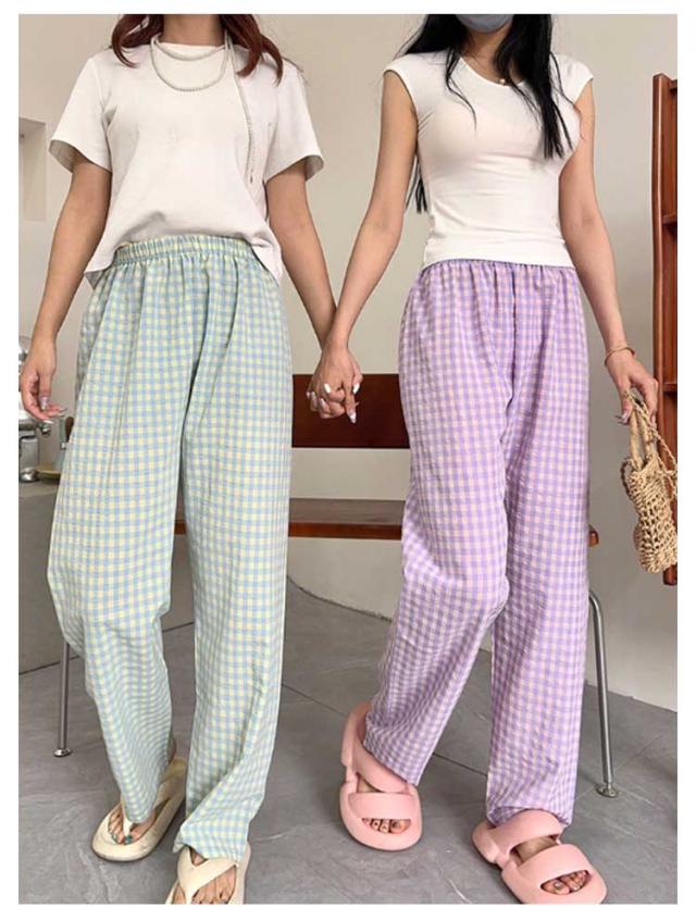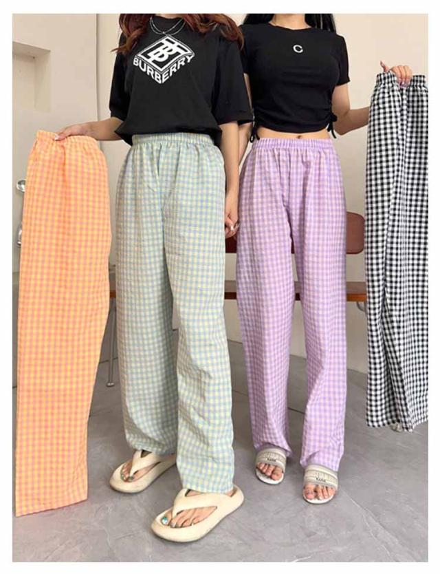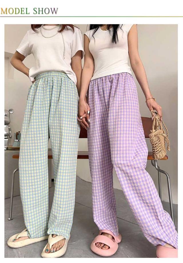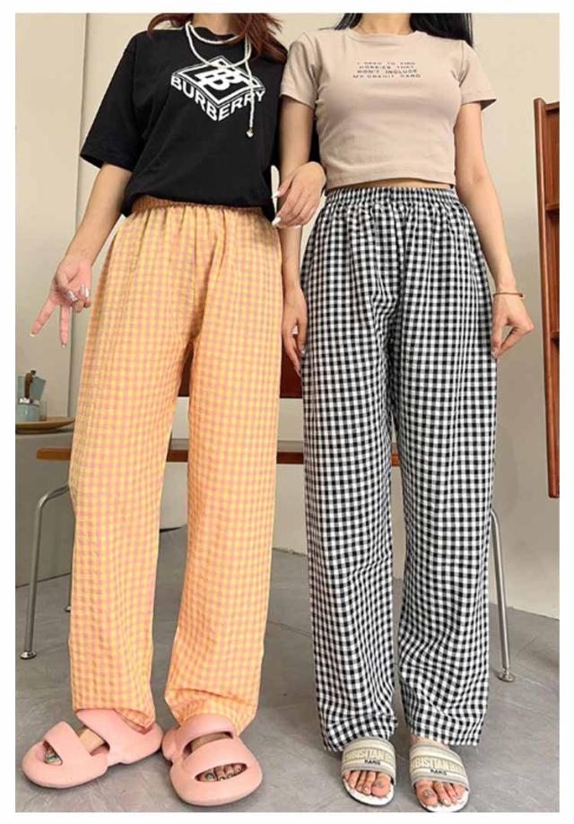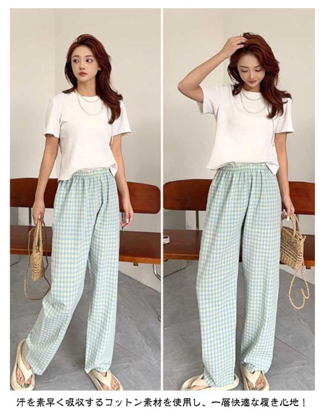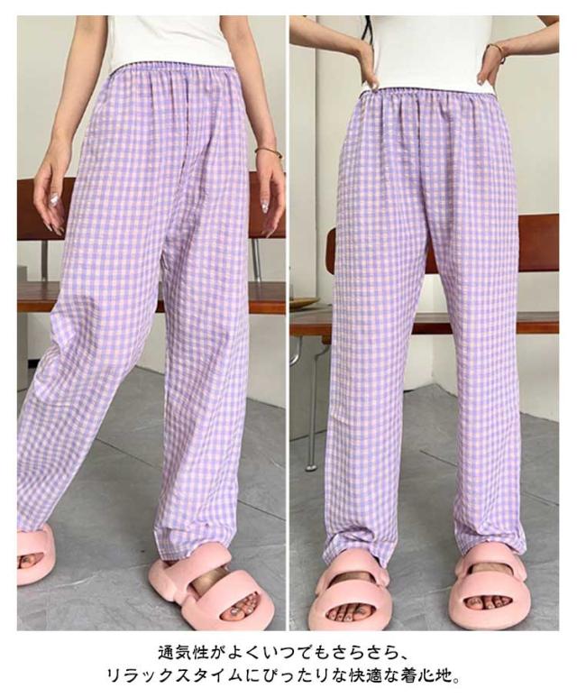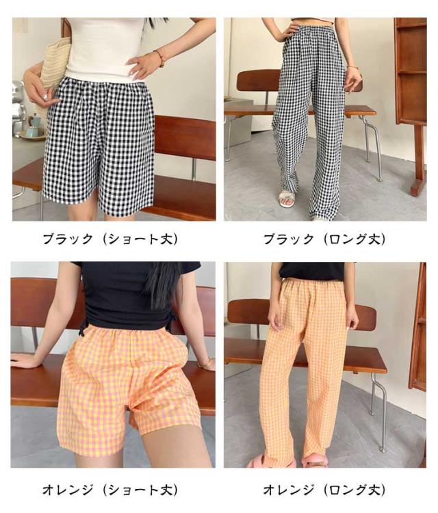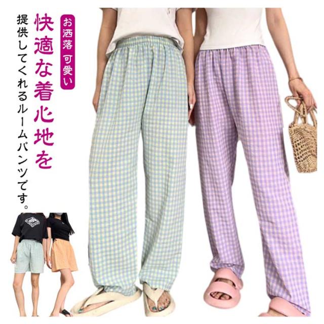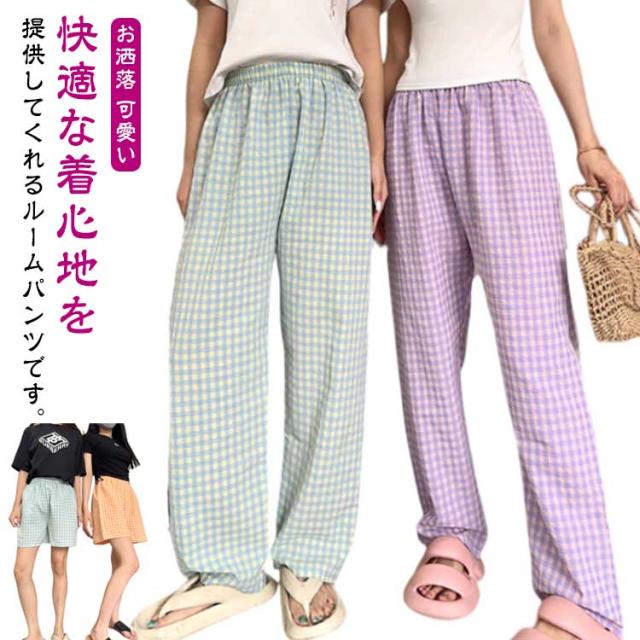 涼しい ロングパンツ ボトムス リラックスパンツ レディース お洒落 ショートパンツ チェック柄 ナイトウェア ズボン ルームパンツ イージーパンツ 春夏 ゆったり 部屋着 寝巻き パジャマ チェック柄 可愛い