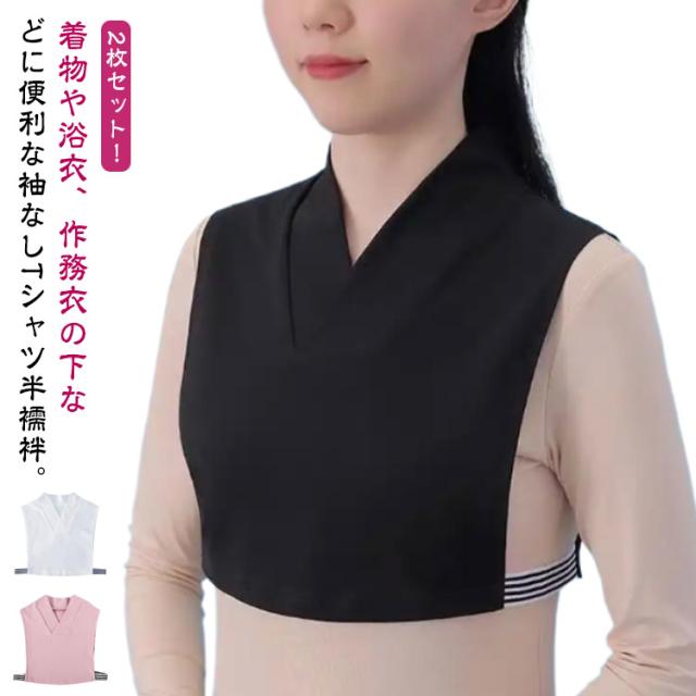 2枚セット!襦袢 肌襦袢 ノースリーブ 衿付き 付け襟 半襦袢 Tシャツ 着物 2枚セット!襦袢 半衿 和装インナー 浴衣 半襟 着物 下着 肌着 速乾 長襦袢 和服 男女兼用