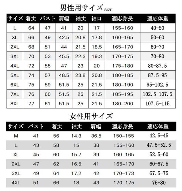 | サイズ | 男性L 男性XL 男性2XL 男性3XL 男性4XL 男性5XL 男性6XL 男性7XL 男性8XL 女性M 女性L 女性XL 女性2XL 女性3XL 女性4XL |