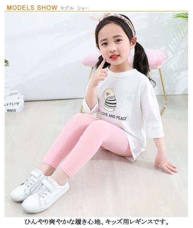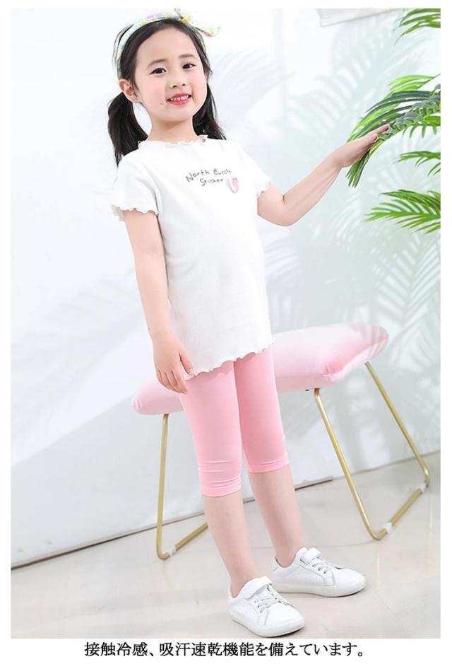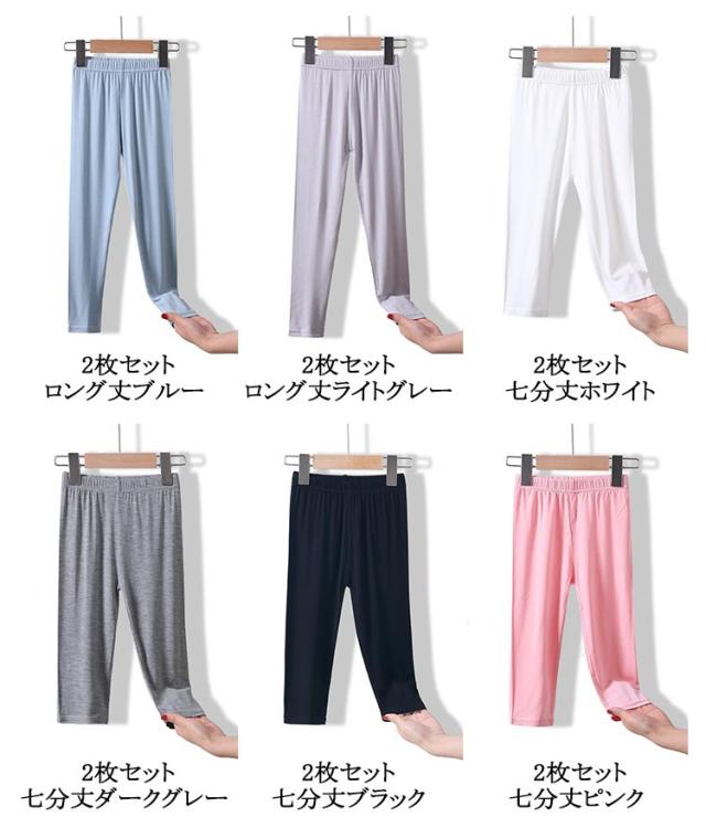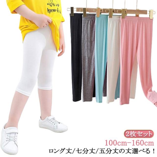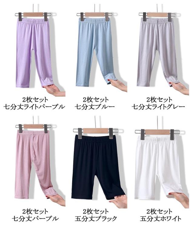 キッズ レギンス 2枚セット 接触冷感 吸汗速乾 薄手 ひんやり 涼しい スパッツ 7分丈 5分丈 ロング丈 シンプル 春 夏用 涼感 UVカット インナー 無地 ボトムス 女の子 ジュニア 子供服 蚊よけ ロングパンツ ストレッチ モダール 日焼け防止 ダンス 送料無料