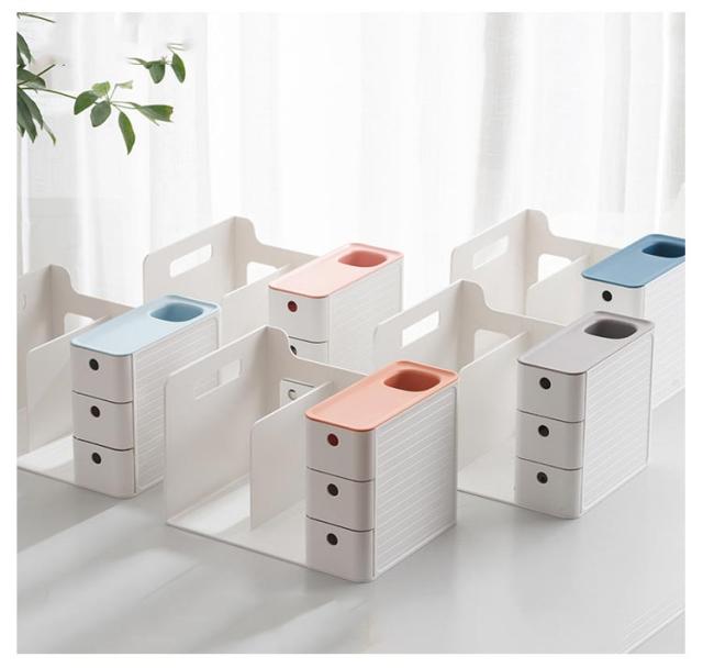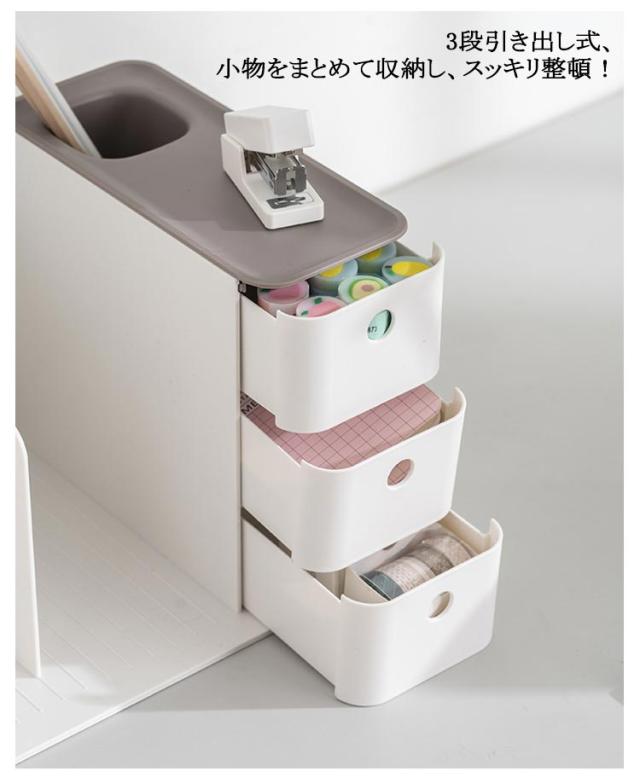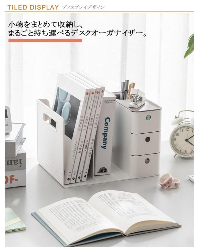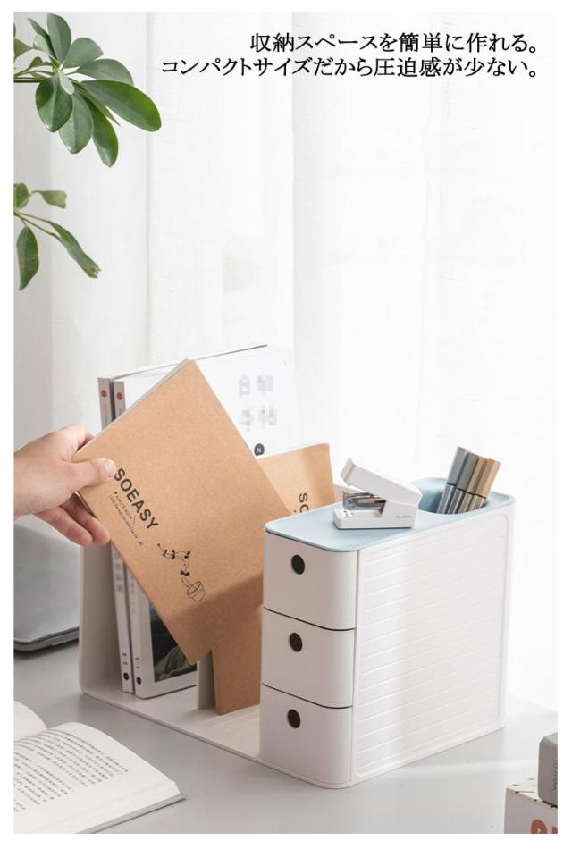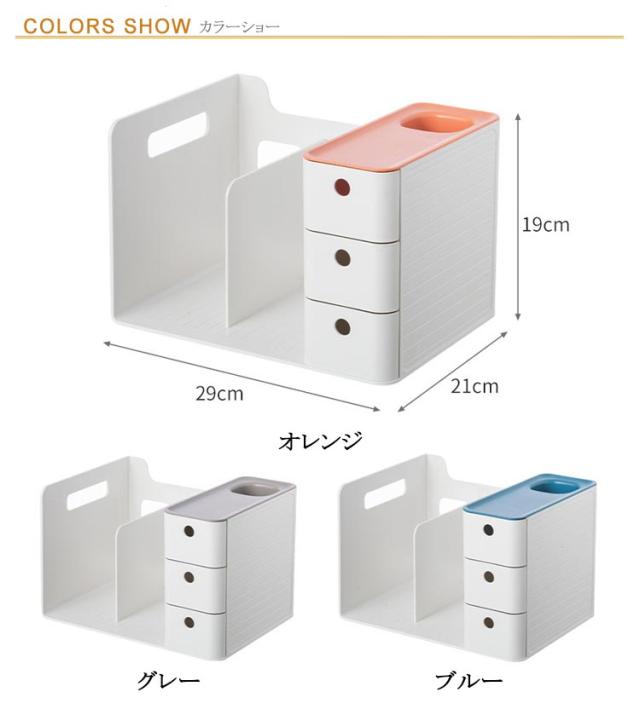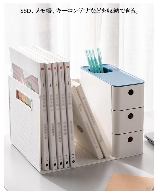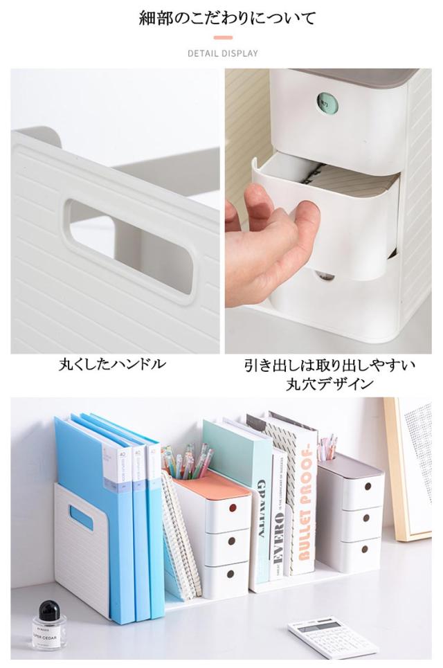 3色 引き出し付き 引き出し ブックスタンド 本棚 グレー ブルー オレンジ 卓上収納ケース 卓上収納ボックス 本立て 仕切り 机上 卓上収納ボックス デスク収納 ペンスタンド 書類ホルダー 卓上収納ラック 置き棚 書類 収納 オフィス収納