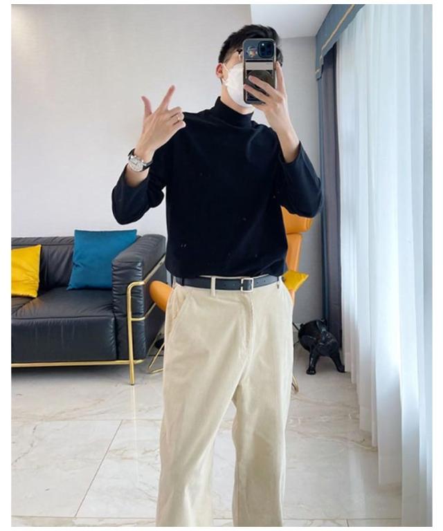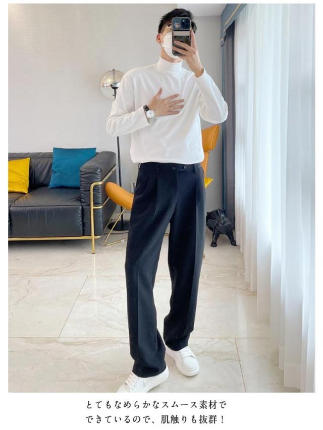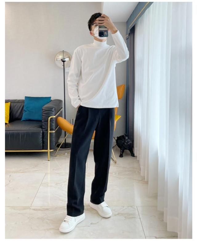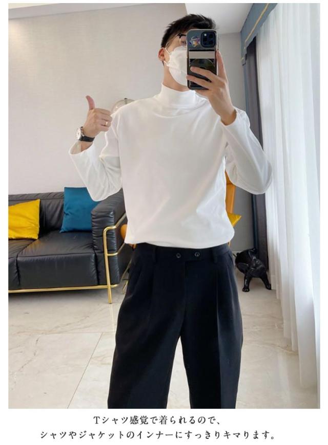 ロングtシャツ トップス メンズ ロングスリーブ モックネック 長袖tシャツ tシャツ カットソー ハイネック 男性 ロンt 春 秋 冬 長袖 インナー 薄手 ゆったり 2点セット 秋服 秋物 無地 シンプル 大きいサイズ 黒 白 韓国風