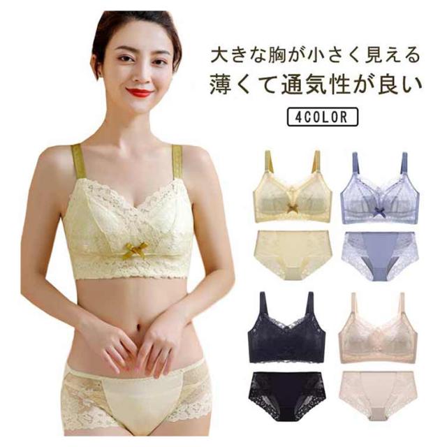 猫背 胸を小さく見せる ブラ ショーツ 上下セット 補正ブラ 脇肉 薄型パッド 補正下着 大きいサイズ レース 胸を小さく見せる ブラジャー スリム 谷間 姿勢 補正 ノンワイヤー かわいい 着やせ ブラ 着痩せ フック ホック カップ