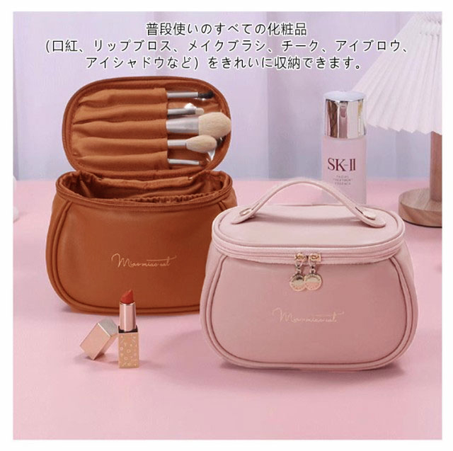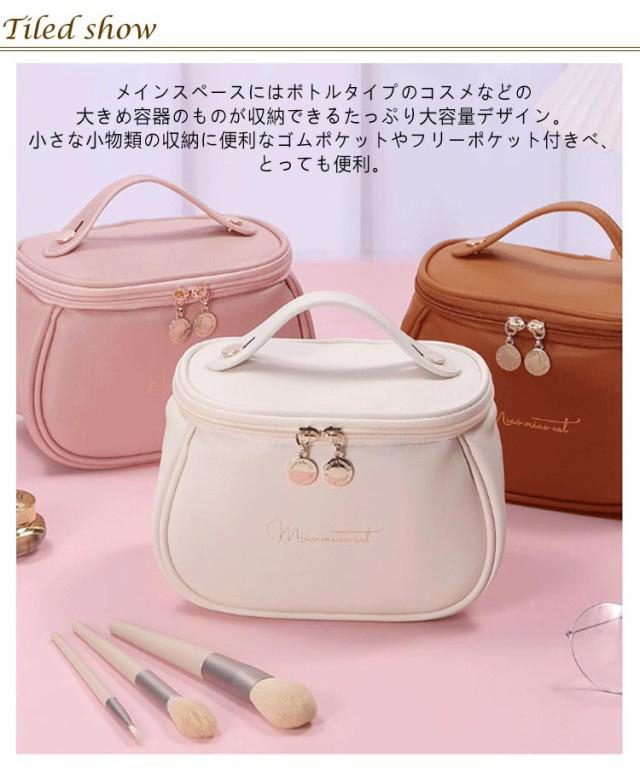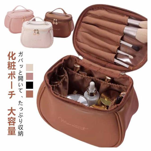 コスメポーチ PU 化粧ポーチ 撥水 メイクポーチ 縦型 大容量 レディース 自立 革 可愛い バッグインバッグ 防水 レザー 軽量 トラベルポーチ 機能的 マルチポーチ 化粧バッグ 持ち運び 出張 旅行 おしゃれ ダブルファスナー 持ち手付き