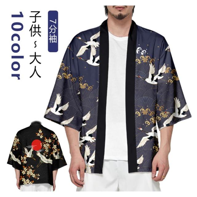 カーディガン カーディガン 和柄 メンズ 大人 羽織り キッズ 甚平 お祭り 羽織 シャツ コート 7分袖 夏祭り 浴衣 ゆったり 開襟シャツ 和式パーカー 鳥柄 おしゃれ 男女兼用 花火大会 子供 和装 夏フェス プレゼント ツル 松 鶴松