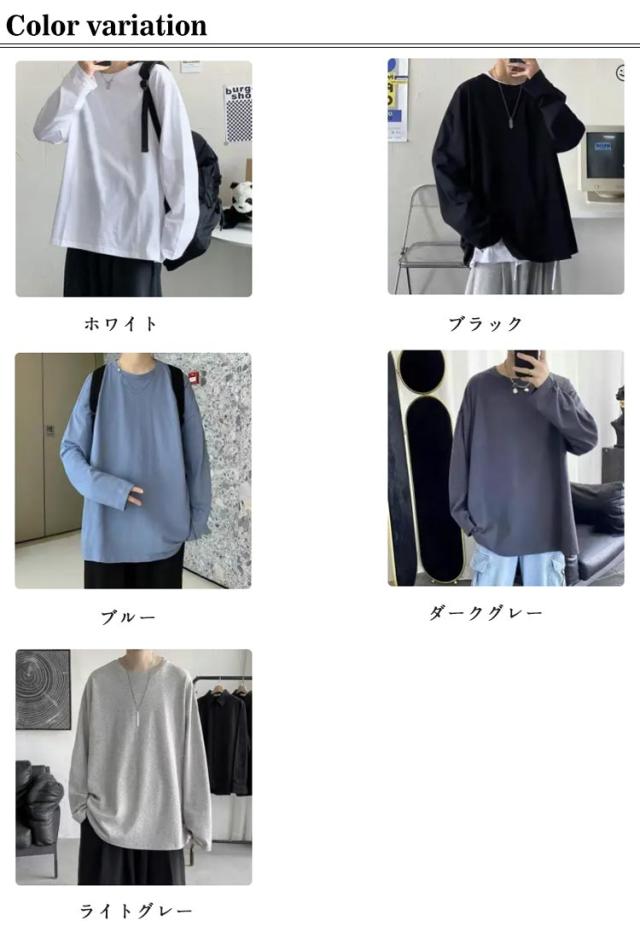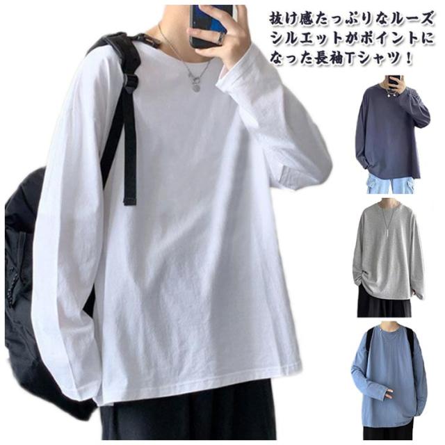 インナー メンズ 秋 長袖tシャツ ロングtシャツ 長袖 クルーネック 丸首 冬 春 tシャツ 男性 ロングスリーブ トップス 長袖tシャツ カットソー ゆったり 黒 ビッグシルエット 無地 シンプル 秋服 秋物 韓国風 オーバーサイズ 白 グレー ブルー 大きいサイズ