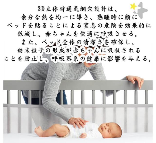 | 2点セット 通気性抜群なメッシュ素材のベビーベッドガード。 3D立体時通気網穴設計は、余分な熱を均一に導き、熟睡時に顔にベッドを貼ることによる窒息の危険を効果的に低減し、赤ちゃんを快適に呼吸させる。また、ベッド全体の清潔さを確保し、粉末粒子の形成が赤ちゃんに吸収されることを防止し、呼吸器系の健康に影響を与える。 高密度の3D弾性繊維と安定した色使いで、弾力性と肌にやさしく、弾力性と柔らかさを兼ね備え、空気に包まれて肌に密着し、赤ちゃんをよりやさしくケアします。環境に優しく、通気性があり、手触りが柔らかく、オールシーズン使用でき、長期間使用できます。 洗える、お手入れが簡単。 【設置が簡単】2つのセクションの組み合わせ、長さ調節可能、さまざまなサイズのベビーベッドに適しています。接続はストラップで設計されており、よりしっかりしていて非常に便利です。 | |