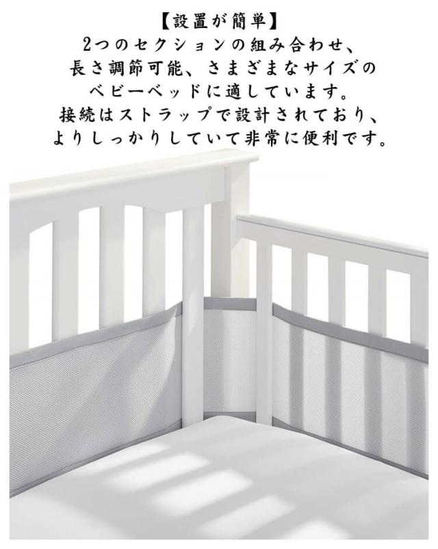 ベビーベッドガード 赤ちゃん メッシュ 夏用 洗濯可能 空気循環可能なベッドガード 転落防止 ベッドバンパー 通気 ベビーベッド用 サイドガード ケガ防止 2点セット 安全性 収納便利 布団落下防止 2点セット 新生児 出産祝い ギフト プレゼント