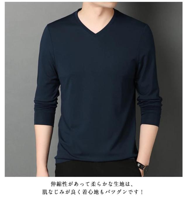 長袖tシャツ 秋物 春 カットソー Vネック 細身 インナー 長袖 大きいサイズ ロンt ロングtシャツ 無地 秋 2点セット 薄手 シンプル tシャツ スリムフィット ストレッチ 秋服 紺 2点セット tシャツ ビジネス カジュアル スリム 黒 白 冬 ネイビー グリーン