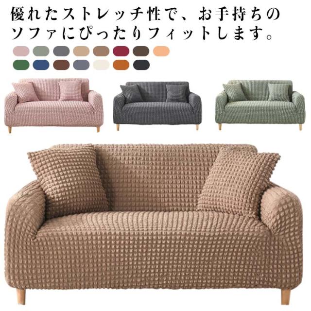 ソファー保護 ソファーカバー 肘あり マルチカバー ワッフル ポコポコ 肘付き ストレッチ素材 ソファカバー 伸縮性良く ふわふわ 北欧風 柔らかい 洗える 厚手 おしゃれ 優しい肌触り感 模様替え 気分転換 四季適用 2人掛け