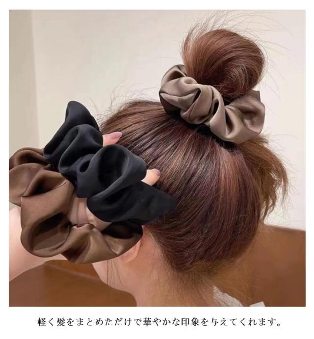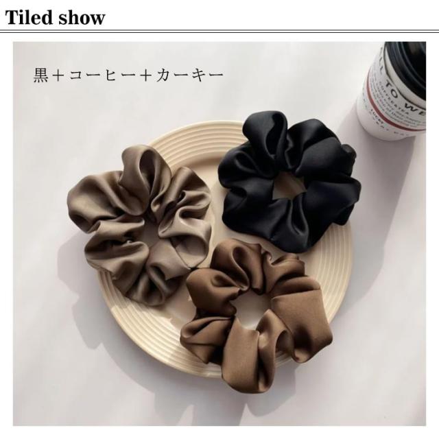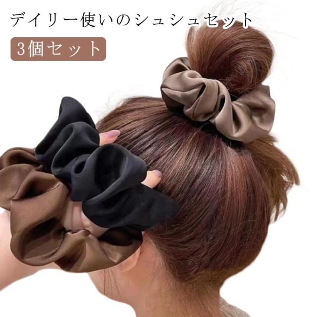 カラー 定番 髪飾り 無地 大人っぽい 光沢感 ヘアアクセサリー オフィス 仕事 髪留め 3個セット ヘアアレンジ 可愛い シンプル ヘアアクセサリー ボリューム ヘアゴム レディース シュシュ かわいい おしゃれ プレゼント ギフト