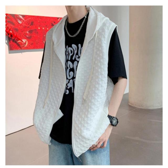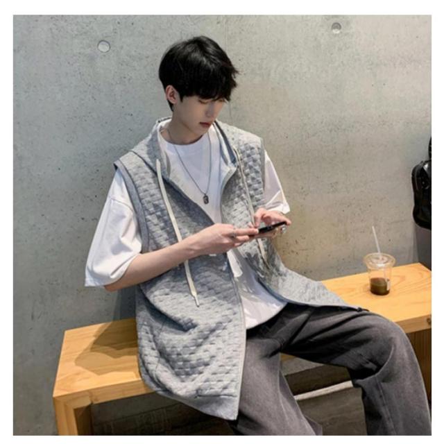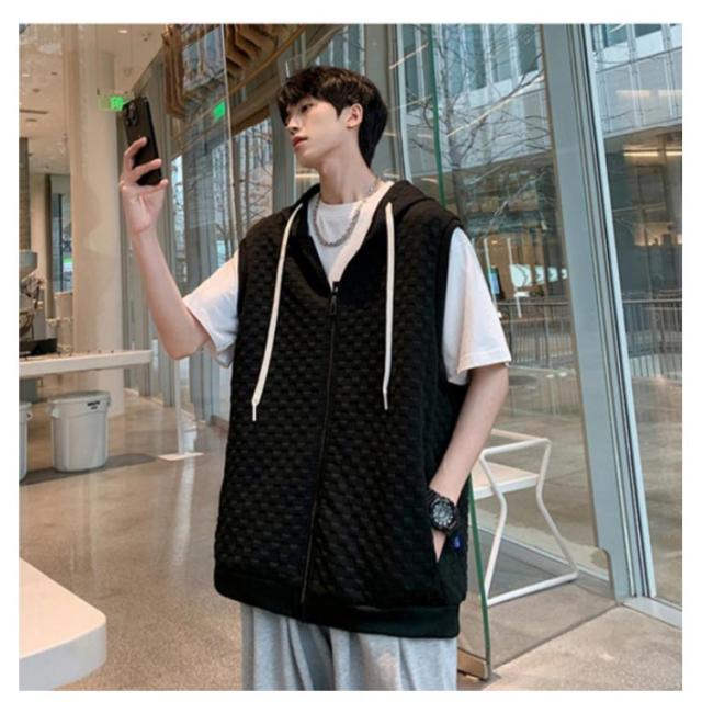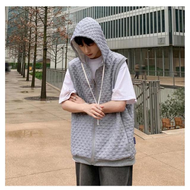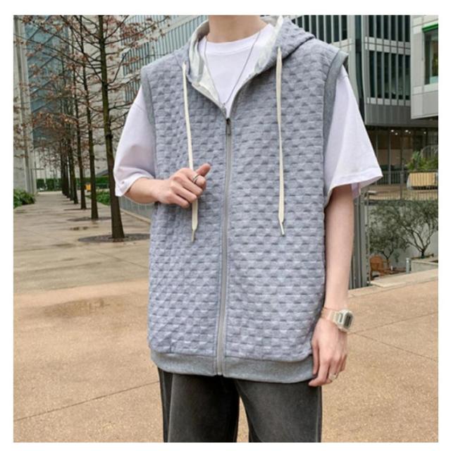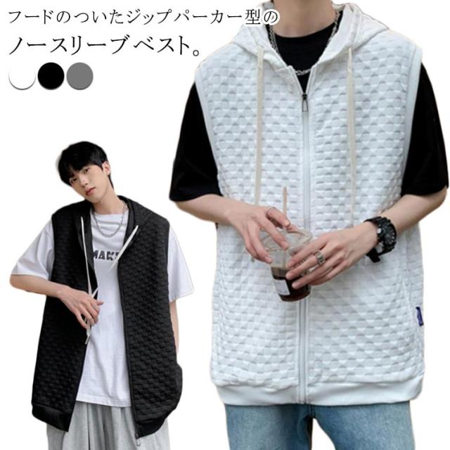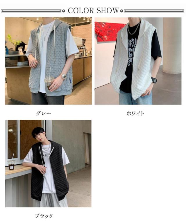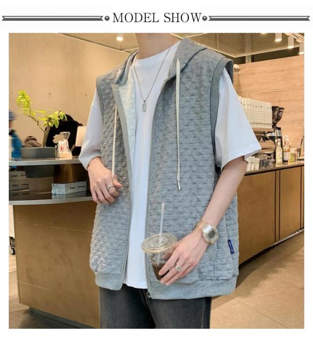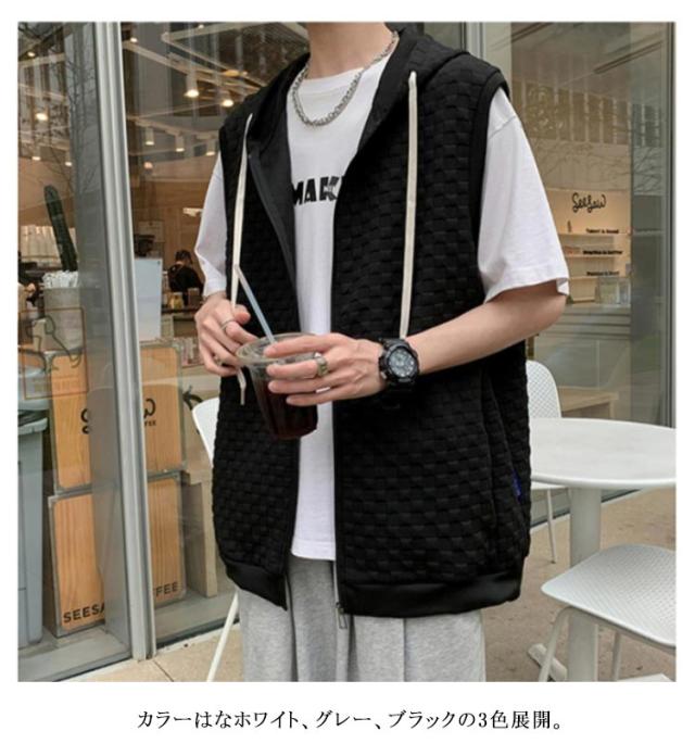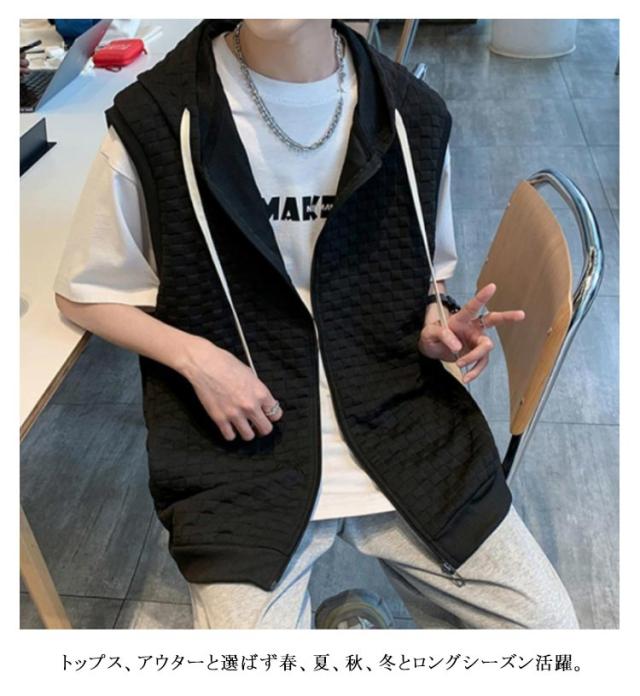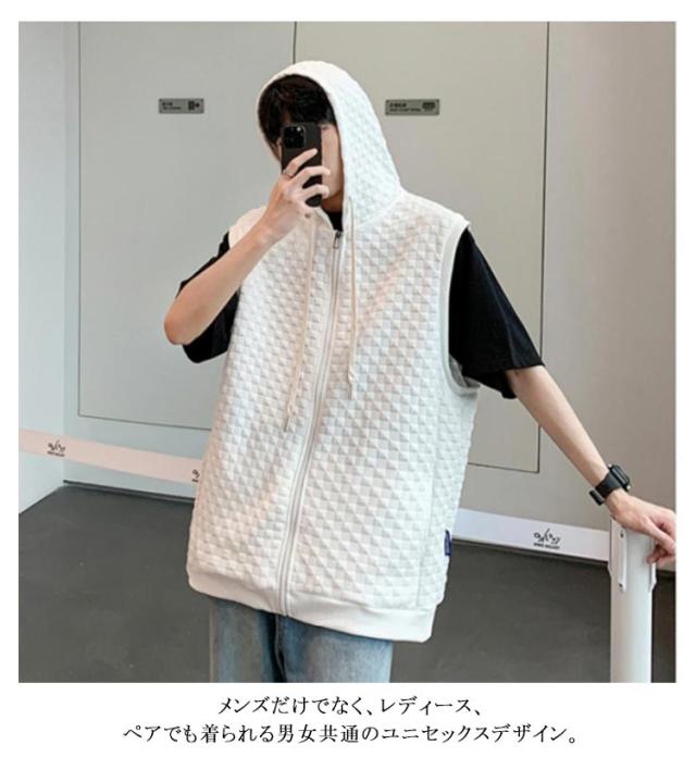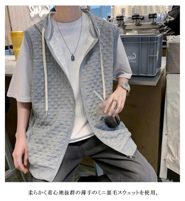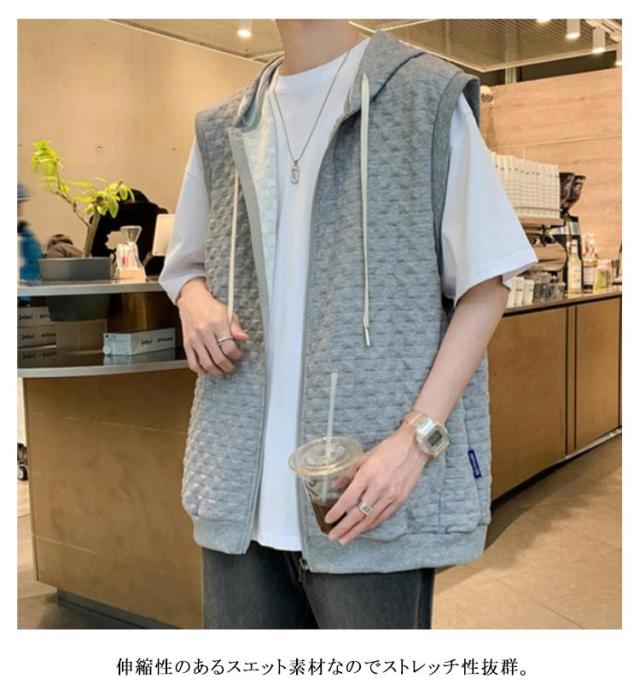 通勤 メンズベスト パーカー 通学 スウェットパーカー ワッフル生地 ベスト 無地 ノースリーブ トップス フード付き カジュアルベスト ジップアップ ベスト ライトアウター 前開き スポーツ 春秋 きれいめ おしゃれ 送料無料