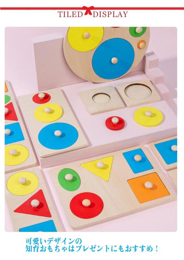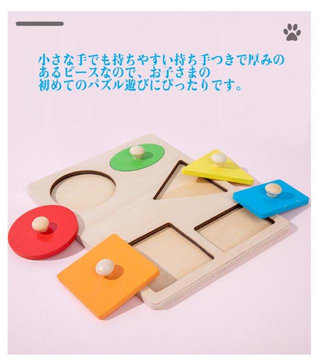 | 丸・三角・四角の基本的な図形のパズルです。 小さな手でも持ちやすい持ち手つきで厚みのあるピースなので、お子さまの初めてのパズル遊びにぴったりです。 遊びながら手先の発育に図形への理解に一緒にお話しして言語の習得に。 可愛いデザインの知育おもちゃはプレゼントにもおすすめ! | |