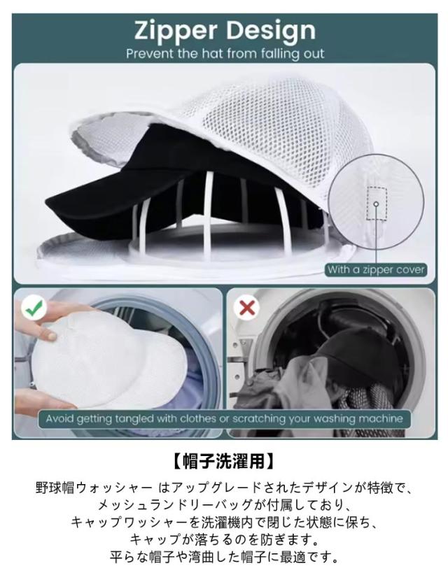 | 洗濯機で帽子を丸洗い キャップウォッシャー シワ/型崩れなし (キャップラック+洗濯ネット)2点セット 【実用的なデザイン】帽子の洗濯・乾燥・形状の保護・保管時に使用ができます。ラックのみを備えたほとんどのベースボール キャップ用ハット クリーナーとは異なり、内側にキャップラックが付いたメッシュ バッグで設計されています。 【二層ポリエステルデザイン】超丈夫な帽子ラックは変形しにくい。外層の大きな穴は掃除が簡単で、内層は変形しにくいです。 【アップグレードされた強化ジッパー】よりスムーズに。より強く。耐久性に優れています。ジッバーヘッドはゴムパンドで保護されており、最後まで引っ張るとジッパーが保護され、ジッバーが損傷しません。 【帽子洗濯用】野球帽ウォッシャー はアップグレードされたデザインが特徴で、メッシュランドリーバッグが付属しており、キャップワッシャーを洗濯機内で閉じた状態に保ち、キャップが落ちるのを防ぎます。平らな帽子や湾曲した帽子に最適です。 【帽子のお手入れが簡単】キャップウォッシャーは設置と操作が簡単で、帽子を手で洗う必要がなく、帽子を変形させることなく洗うことができるため、貴重な時間とエネルギーを大幅に節約できます。帽子の形状を維持するのに最適で、洗濯機や衣類を傷や絡まりから保護します。 【高品質の素材】超強力なPPで作られており、つばの自然な曲線を維持するのに役立ち、帽子の形をキープしてくれます。踏みつけても壊れることのない耐久性を持っていますので、洗濯機での使用も安心! 【多用途】このキャップウォッシャーケージを使用すると、キャップの洗浄、乾燥、保管、保護がこれまでより簡単になります。キャップラックがなければ、ウールの帽子、下着、パンティー、小さな衣類などの通常の洗濯バッグとしても使用でき、さまざまな洗濯ニーズを満たします。 | |