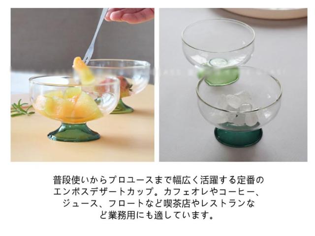 | 耐熱ガラス 食洗機対応 電子レンジ対応 ポップなカラーがレトロ感を感じさせる、かわいいガラスのアイスカップ。 デザートやおつまみなどにおすすめです。 バイカラーのカラーリングがおしゃれで、ただキャンディやチーズをのせただけでもかわいらしく使えます。 耐熱ガラスで、少しの熱なら大丈夫なのも嬉しい。 モーニングやコーヒーブレイクに最適。普段使いはもちろん、来客時のおもてなしにもぴったり。美しい透明度を保持したファインクリアー商品。 業務用・家庭用食洗機/電子レンジに対応しており、グラスに直接お湯を注ぐこともできるので料理にも最適です。 普段使いからプロユースまで幅広く活躍する定番のエンボスデザートカップ。カフェオレやコーヒー、ジュース、フロートなど喫茶店やレストランなど業務用にも適しています。 | |