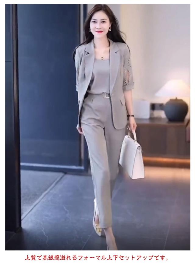 セットアップ セットアップ 入園 入学式 上下セット 上品 オケージョン 卒園 大人 卒業式 パンツ ビジネス レディース OL オフィスカジュアル ミセス 通勤 きれいめ スーツ 50代 40代 30代 学校行事 袖あり お呼ばれ 結婚式 フォーマル