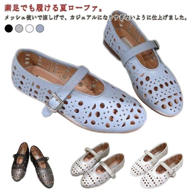 パンプス ローヒール ストラップ ぺたんこ パンプス 歩きやすい ローファー 脱げにくい メッシュシューズ シンプル メッシュシューズ フラットシューズ レディース 軽量 軽い 痛くない 履きやすい 脱げない ホワイト ブラック