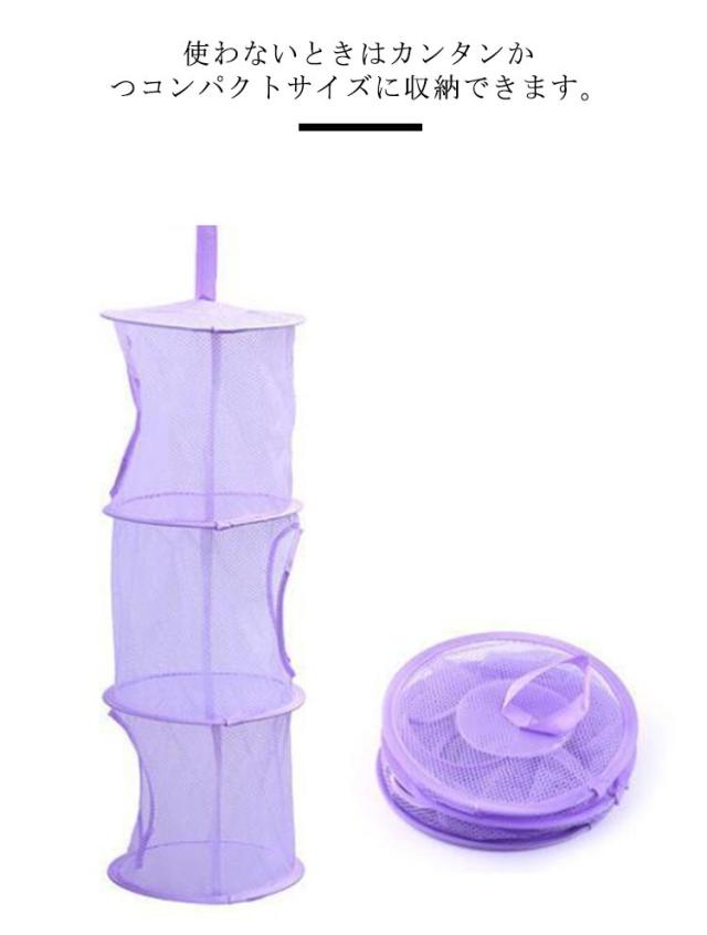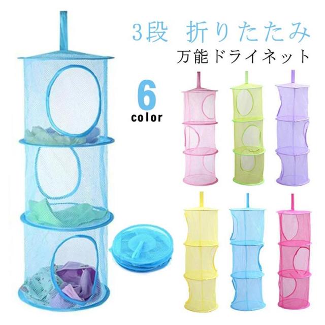 吊り下げ ネットハンガー 3段 折りたたみ 下着 ハンギングラック 万能ドライネット 便利 ブラジャー おもちゃ 万能ドライネット ぬいぐるみ 小物 吊るす収納 コンパクト 物干しネット 日用品 生活雑貨 洗濯用品 型崩れ防止 メッシュ
