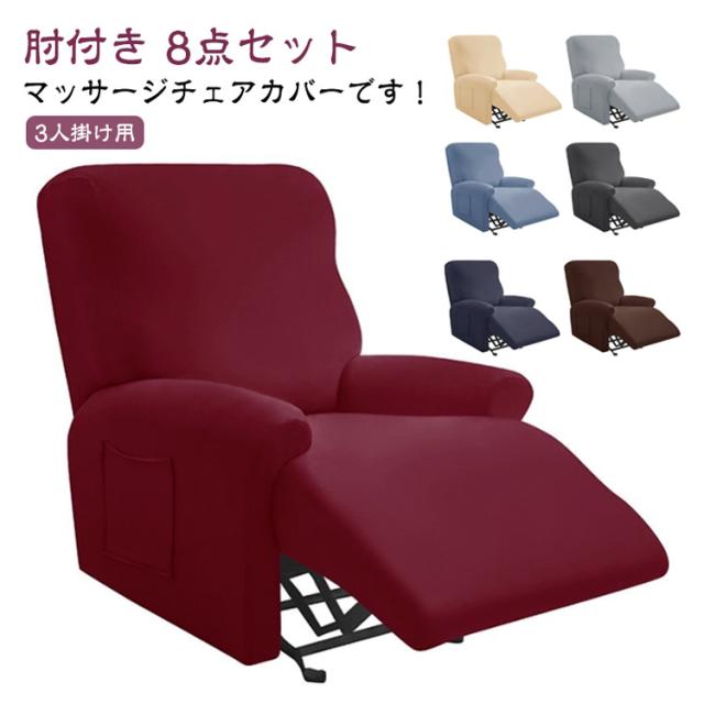 無地 カバー サイドポケット マッサージチェア 8点セット マッサージチェア 電動ソファ ソファーカバー 肘付き カバー ストレッチ 伸縮性 フィットタイプ マッサージソファ用 リクライニングチェアカバー 着せ替えカバー 肘あり