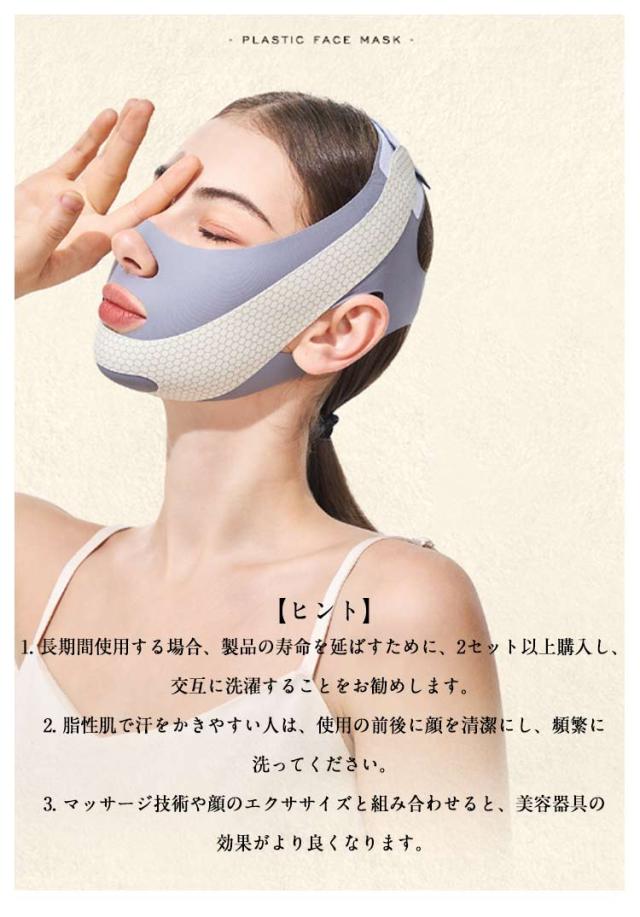 | 料理・家事・育児・読書をしながら装着するだけ! フェイスラインを引き締めるフェイスベルト。 マジックテープで引き締め度を調節でき、装着も取り外しもとても簡単! ストレッチ性が良くて、顔のツボを圧迫しない安心設計で、物理顔リフト、ほかの顔やせている方式より安全! 人体工学に基づいたデザインで頭頂部からフェイスラインをやさしく包み込みます。耳抜き穴も付いているので締め付け間もなし! フェイスラインのゆるみを解消して、若々しく見える!小顔になりたい人は是非お試し下さい。男女問わずお使い頂けます。 【使い方の提案】 最初は30分から適応を開始してください。適応後は、個人の状況に応じて1日1〜8時間使用できます。不快な場合は使用時間を減らしてください。 【ヒント】 1. 長期間使用する場合、製品の寿命を延ばすために、2セット以上購入し、交互に洗濯することをお勧めします。 2. 脂性肌で汗をかきやすい人は、使用の前後に顔を清潔にし、頻繁に洗ってください。 3. マッサージ技術や顔のエクササイズと組み合わせると、美容器具の効果がより良くなります。 【メンテナンスと清掃】 1. 2〜3日ごとに洗うことをお勧めします。あまり頻繁に洗うと、マスクの寿命が短くなります。 2. 40℃以下のぬるま湯と中性洗剤で洗ってください。長時間の浸漬は避けてください。 3. 乾かす前にタオルで水分を吸収し、無理にねじりすぎないようにして、直射日光を避けて風通しの良い場所に干してください。 | |