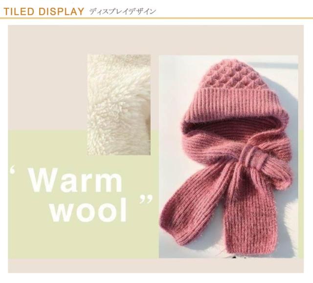 | ・帽子とマフラーが一体になった裏起毛ニット帽 ・毎日身に着けたくなるやわらかな肌触り ・一体化で防寒効果はアップ! ・風や寒さ対策バッチリ◎ | |