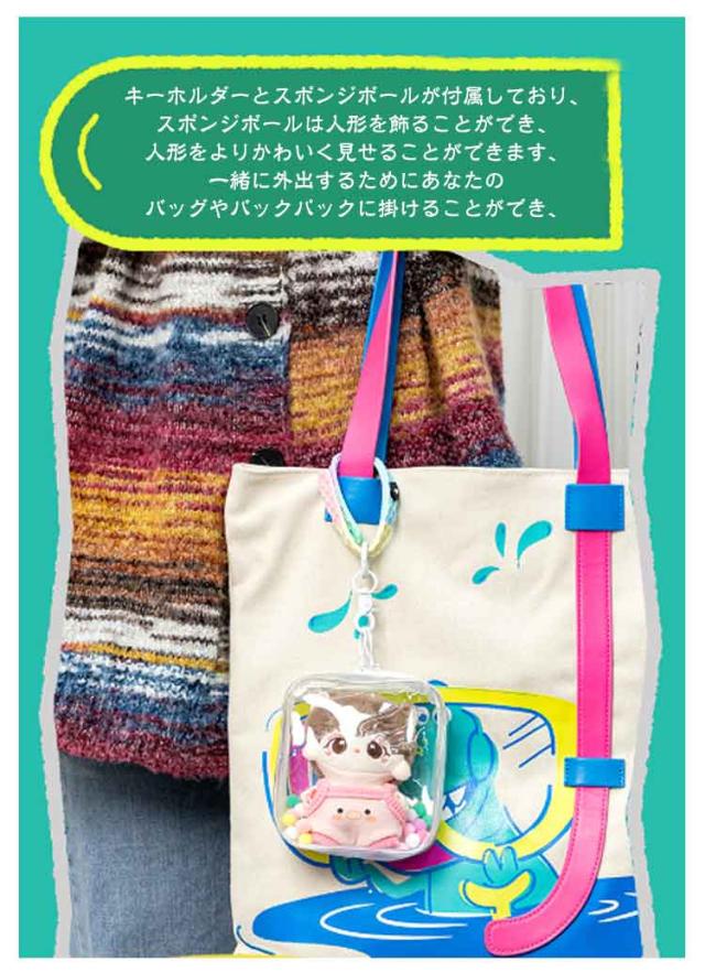 | ぬいぐるみバッグはPVC素材で作られており、丈夫で柔らかく、黄色になりにくく、耐久性があります。 バッグに人形を入れて、水やほこりから人形を保護することができます。 ぬいぐるみバッグは完全に透明なデザインで、人形をはっきりとディスプレイすることができ、外出用バッグとして理想的です。 キーホルダーとスポンジボールが付属しており、スポンジボールは人形を飾ることができ、人形をよりかわいく見せることができます、一緒に外出するためにあなたのバッグやバックパックに掛けることができ、また、私たちの服やバッグを飾ったり、一致させるための小さなアクセサリーとして使用することができます。 あらゆるぬいぐるみ、人形、バッジなどの収納に適しています。この透明なぬいぐるみポーチは、コミックに参加したり、外出したり、ショッピングしたり、旅行したりするのに適しています。 | |