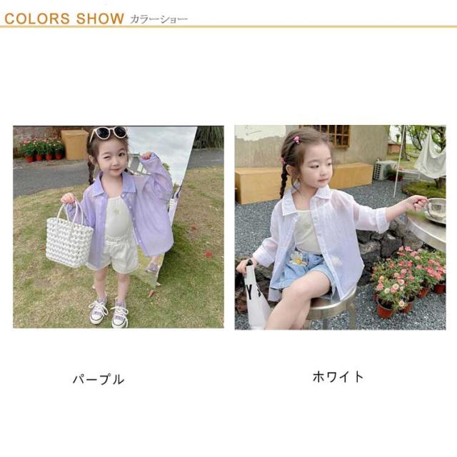 ブラウス 女の子 シアー トップス 可愛い シースルー 羽織 キッズ シンプル おしゃれ 子供服 無地 長袖 シアーシャツ キッズ シャツ 韓国 ガールズ 小学生 幼稚園 保育園 透けシャツ 90 100 110 120 130