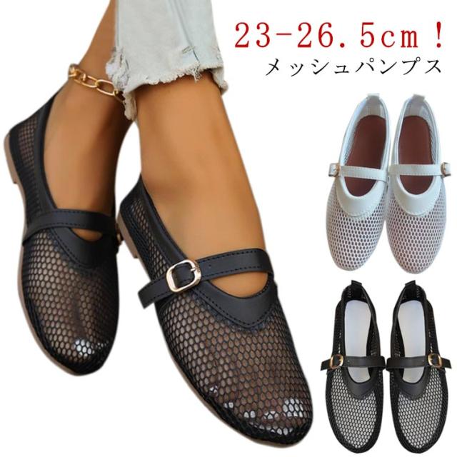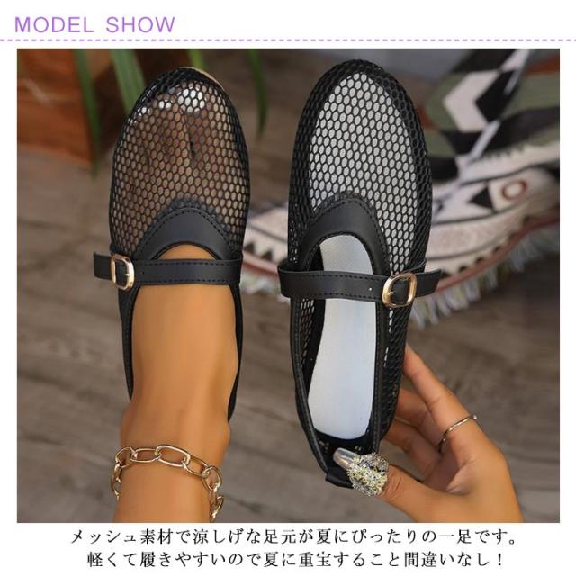 メッシュパンプス サンダル メッシュ パンプス フラットシューズ ぺたんこ シューズ パーティー メッシュ素材 夏 ビーチサンダル スリッパ ストラップ 春 秋 靴 軽い 柔らかい バレエシューズ 通勤 仕事 歩きやすい 疲れにくい 痛くない 大人 可愛い きれいめ 上品 23-26.5cm