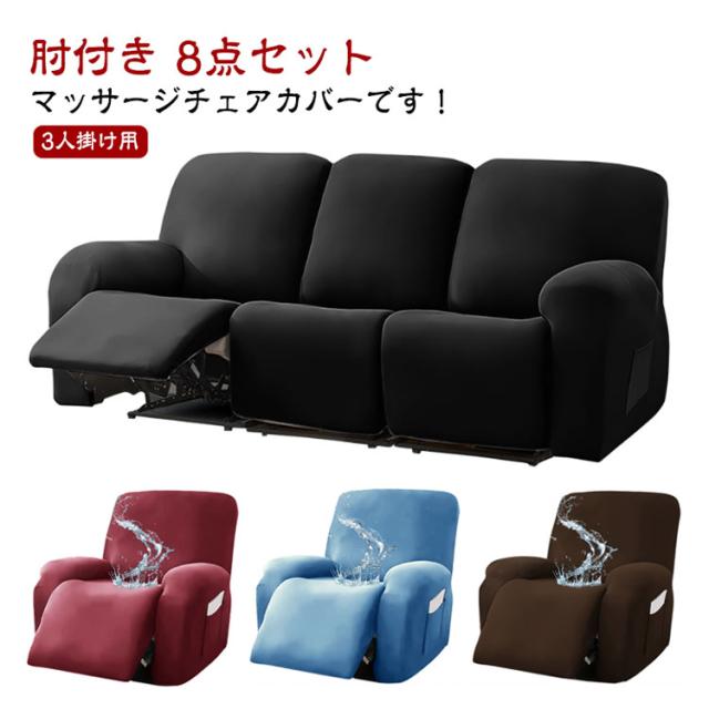 マッサージチェア マッサージチェア 肘付き 電動ソファ ソファーカバー 3人掛け 無地 8点セット カバー カバー ストレッチ 伸縮性 フィットタイプ サイドポケット マッサージソファ用 着せ替えカバー 肘あり