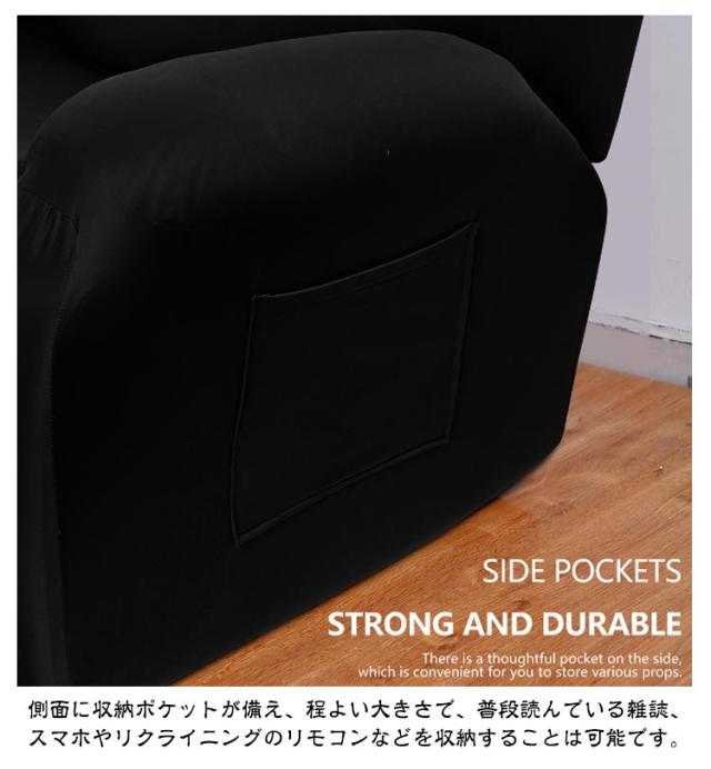 | マッサージチェアカバーです! 3人掛け用 縦横に生地が伸縮するため椅子にフィットするうえ、ゴム入りですっきりとした見た目です。 背もたれ、肘置き、足元まですっぽりとカバーできるから、汚れやキズ、ペットの抜け毛などから大切なチェアを守ってくれます。子供や犬、猫がいる家庭に最適です。 側面に収納ポケットが備え、程よい大きさで、普段読んでいる雑誌、 スマホやリクライニングのリモコンなどを収納することは可能です。 手洗いも洗濯機もOK!手洗いはもちろん、洗濯機にも対応可能です。 お手入れ簡単でいつでも清潔に! | |